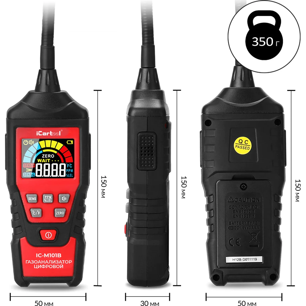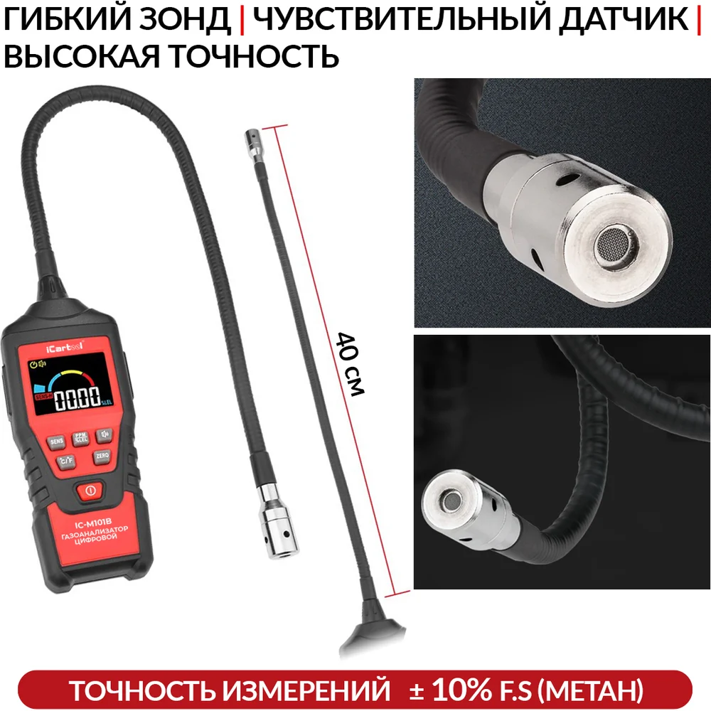 Купить Цифровой детектор утечки взрывоопасных газов iCarTool с зондом, 0-9999 ppm IC-M101B по лучшей цене с доставкой - интернет магазин №1 в России