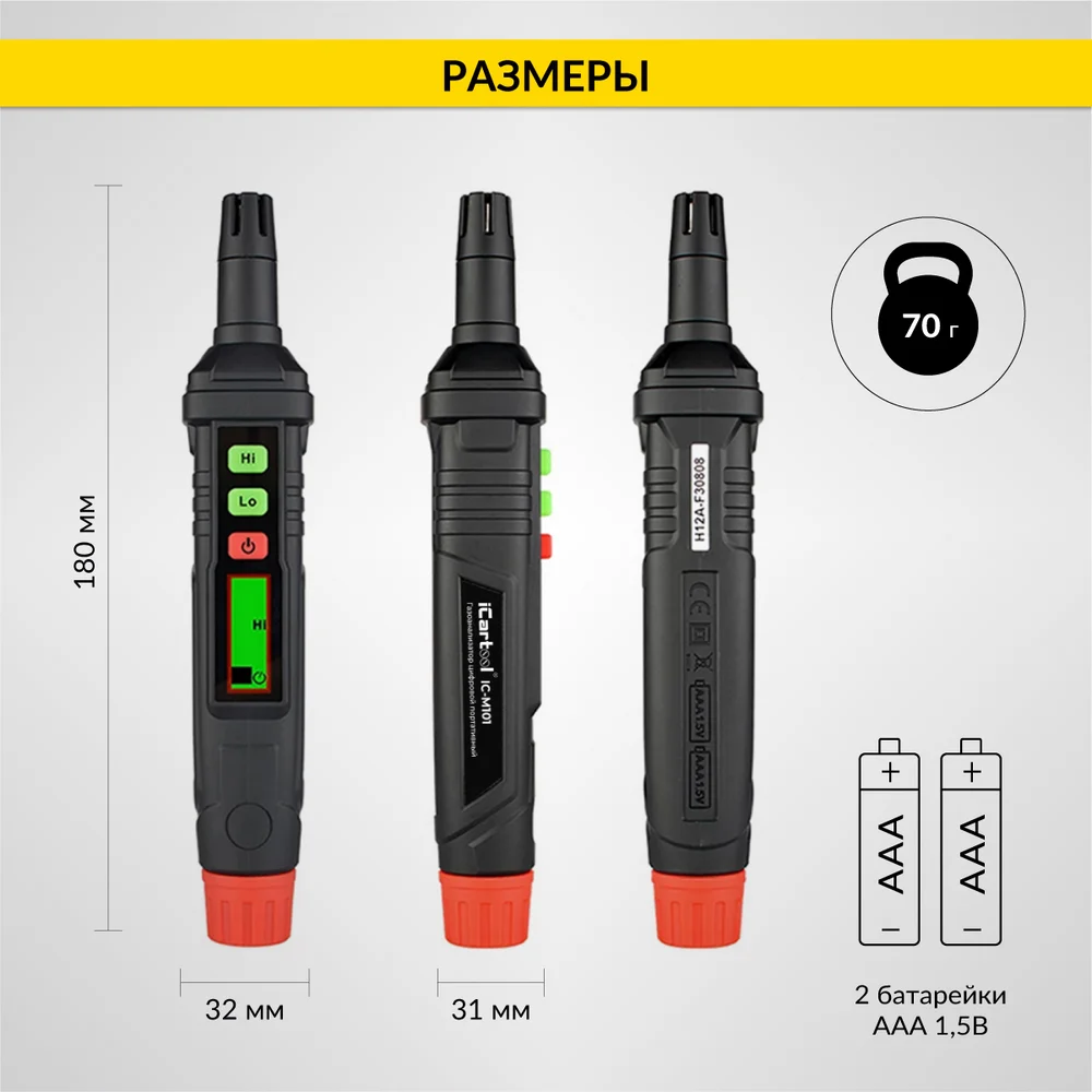 Купить Цифровой портативный детектор утечки взрывоопасных газов iCarTool 0-1000 ppm IC-M101 по лучшей цене с доставкой - интернет магазин №1 в России