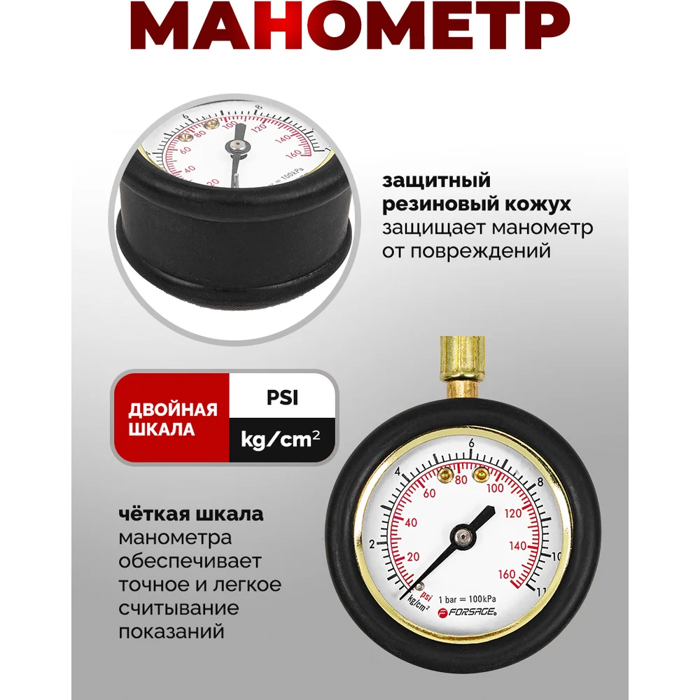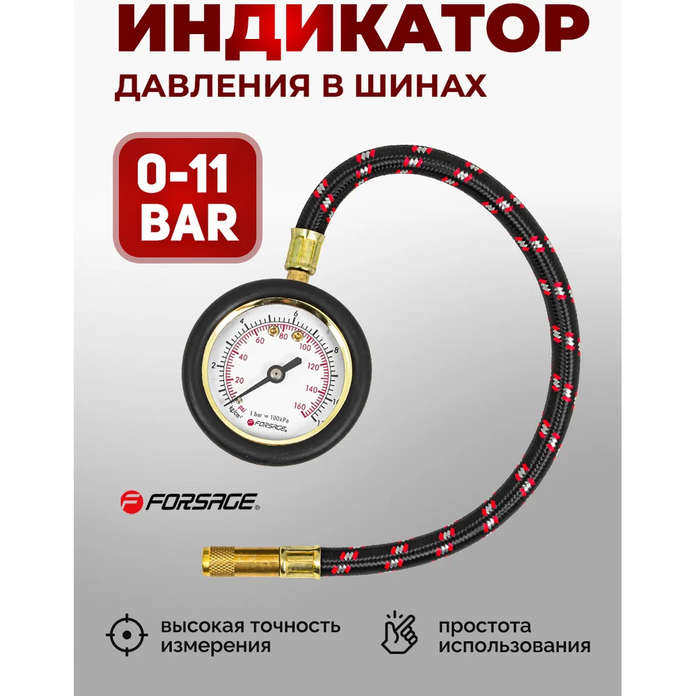 Купить Индикатор для проверки давления в шинах с гибким шлангом Forsage 0-11 bar F-SDG-06(57004) по лучшей цене с доставкой - интернет магазин №1 в России