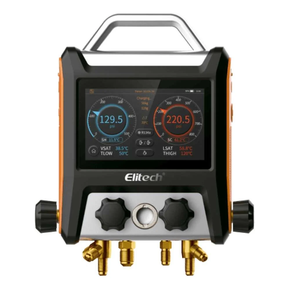 Комплектация Манометрический коллектор Elitech MS-4000; Течеискатель фреона Elitech IR-200; Интеллектуальный вакуумный насос; Ультратонкие интеллектуальные весы для заправки хладагента Elitech U1