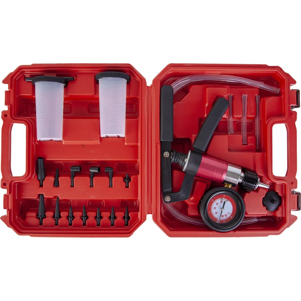 Комплектация Пистолет с манометром – 1 шт; Соединительные шланги разной длины – 5 шт; Набор универсальных адаптеров для подключения к различным системам – 14 шт; Ёмкости для жидкости с крышкой – 2 шт; Пластиковый кейс