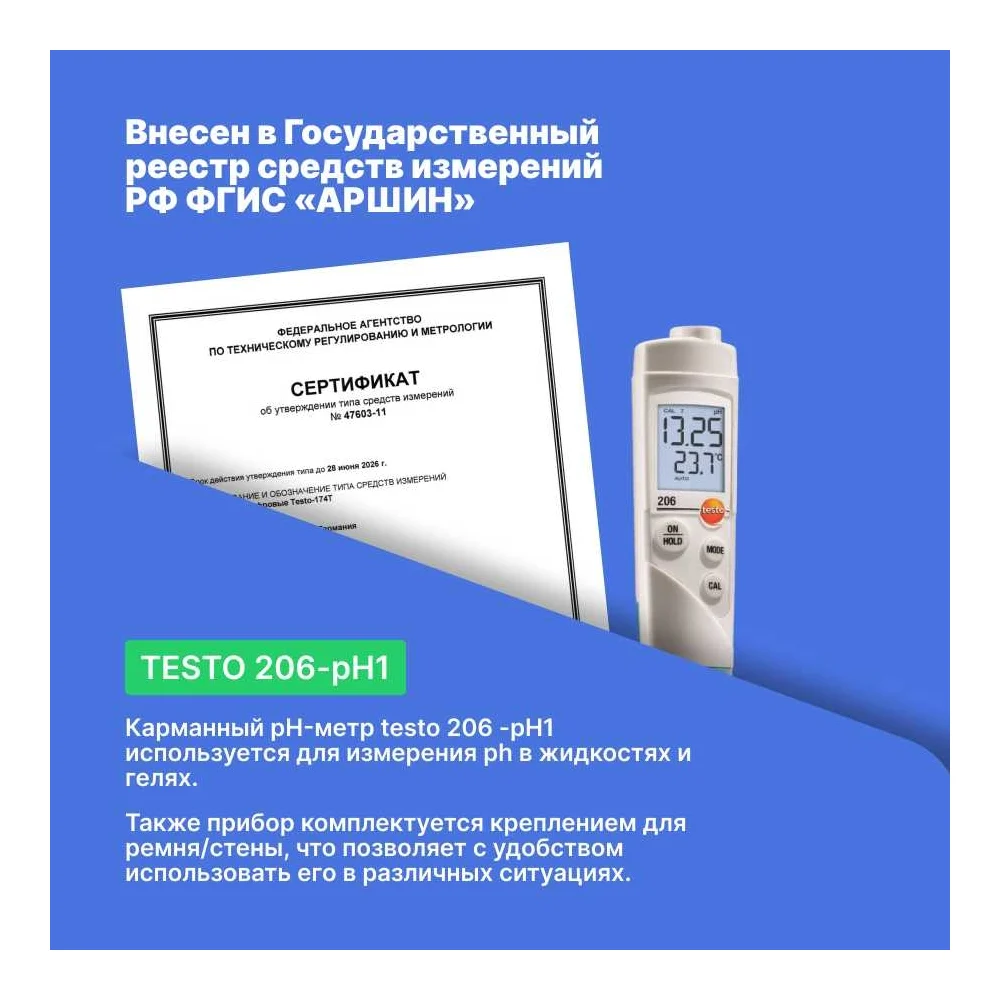 Купить Карманный pH-метр Testo 206-pH1 0563 2061 по лучшей цене с доставкой - интернет магазин №1 в России
