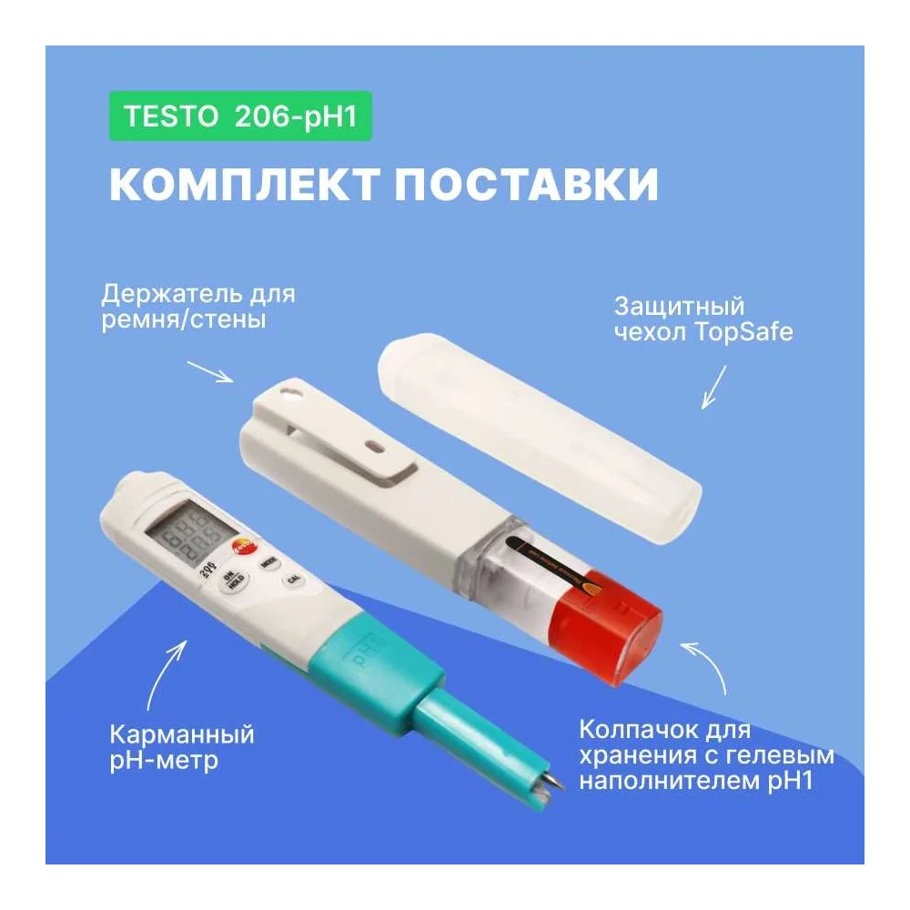Комплектация Ph-метр; Чехол TopSafe; Колпачок с гелем для хранения; Держатель для ремня/стены