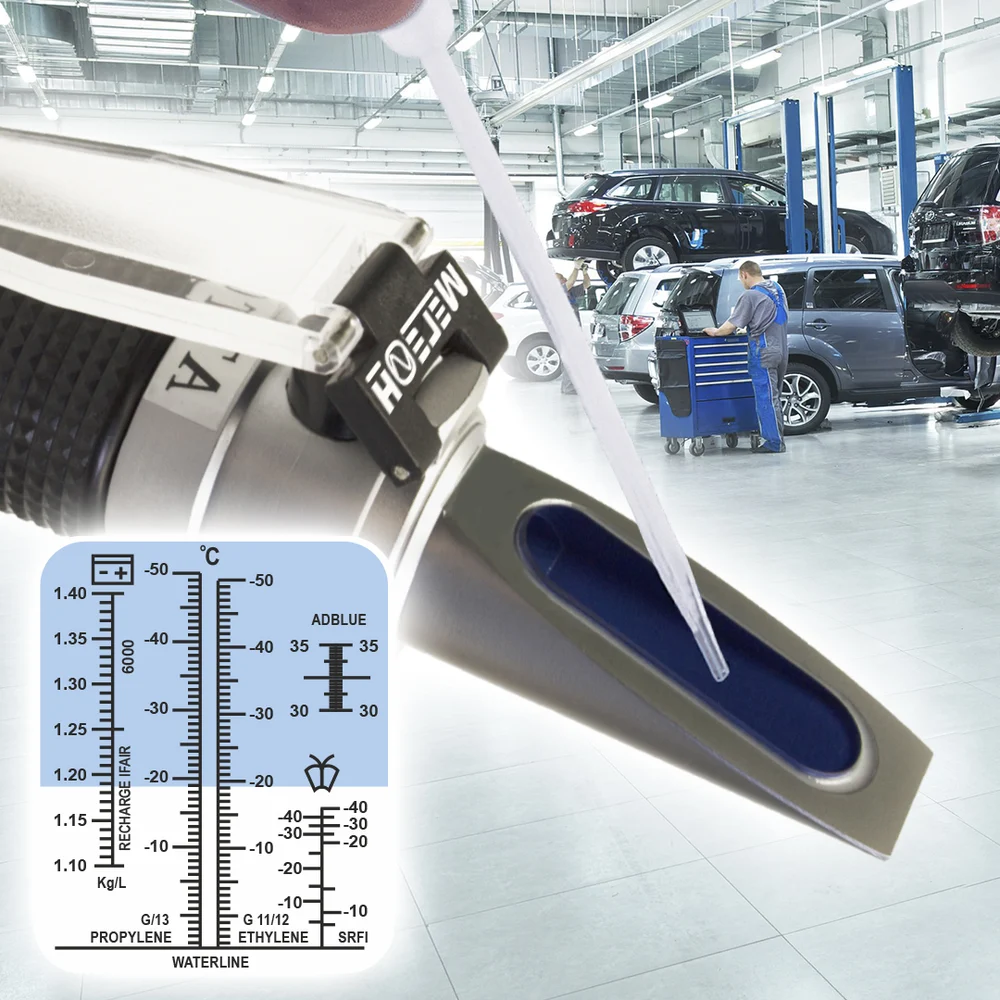 Диапазон измерений антифриз G11/G12/G13: -50...0°C / плотность электролита: 1.10-1.40 / концентрация AdBlue: 30-35% / температура замерзания омывающей жидкости SRFI: 0...-40°C