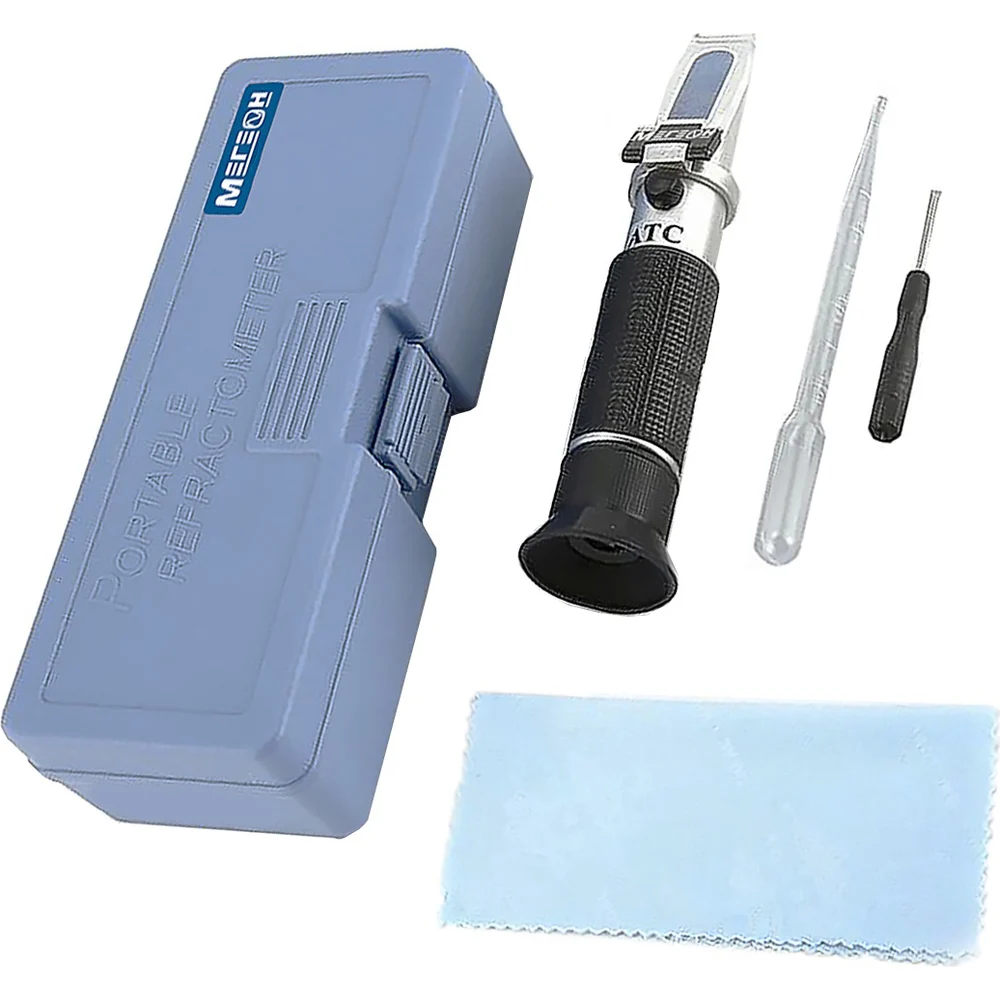 Комплектация Рефрактометр; Отвертка для калибровки; Пипетка; Жидкость для калибровки; Руководство по эксплуатации; Футляр для переноски и хранения