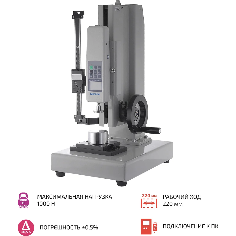 Комплектация Испытательный стенд - 1 шт; Динамометр цифровой в комплекте - 1шт; Пята малая на динамометр- 1шт; Пята большая- 1шт; Ключ шестигранный - 2шт; Шпилька М6х16 - 1шт; Руководство по эксплуатации- 1 экз