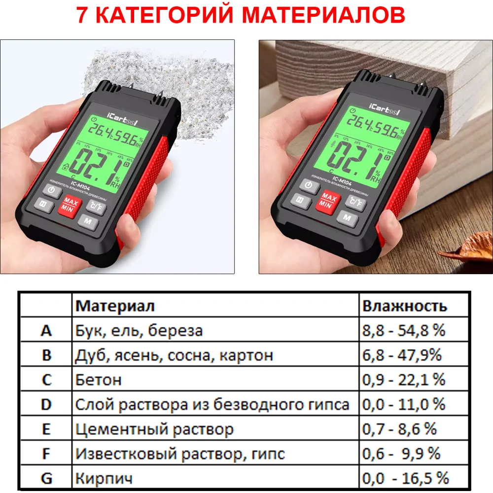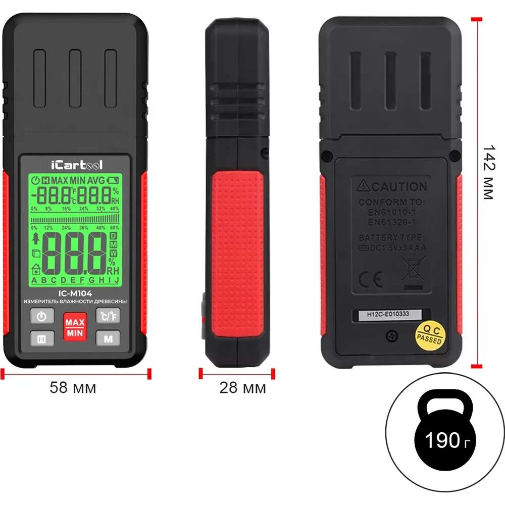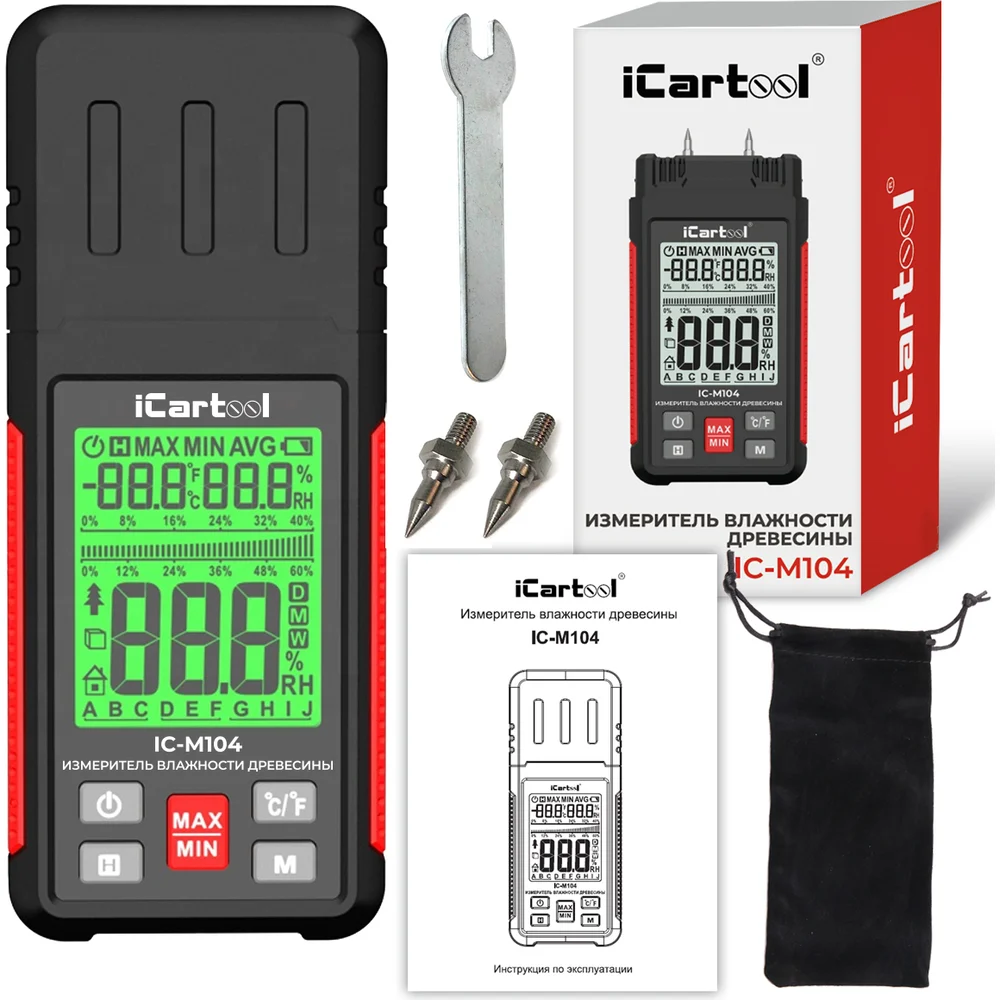Купить Электронный измеритель влажности древесины iCarTool гигрометр IC-M104 по лучшей цене с доставкой - интернет магазин №1 в России