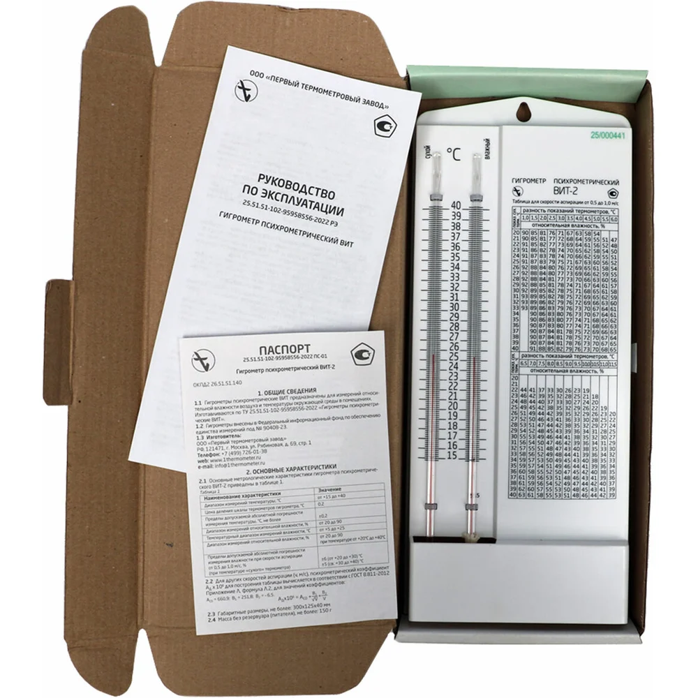 Купить Гигрометр психрометрический ООО "Первый термоментровый завод" ВИТ-2 с поверкой РФ, диапазон: от +15 до +40 С, ПТЗ ш/к 32617 671461 по лучшей цене с доставкой - интернет магазин №1 в России