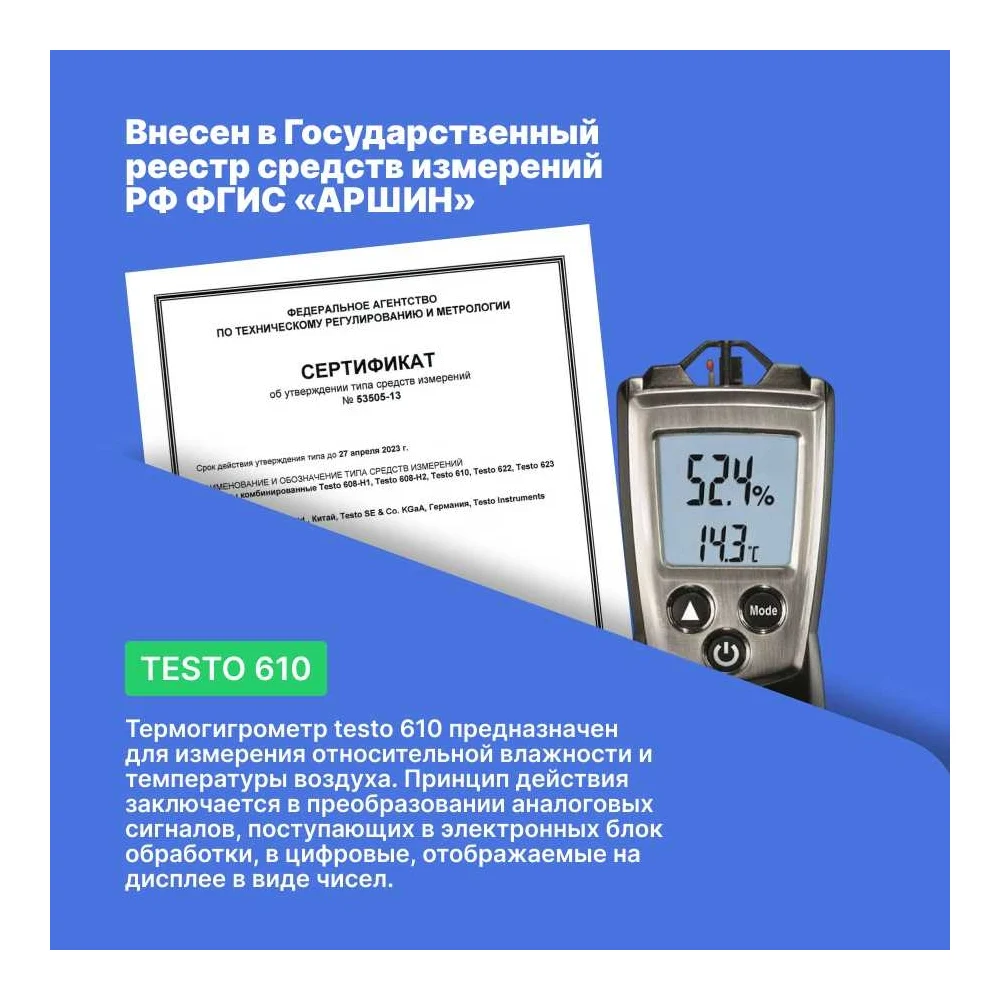 Купить Прибор для измерения влажности/температуры с поверкой Testo 610 0560 0610-СП по лучшей цене с доставкой - интернет магазин №1 в России