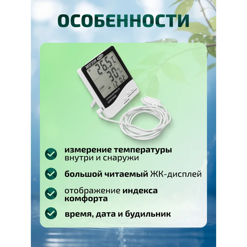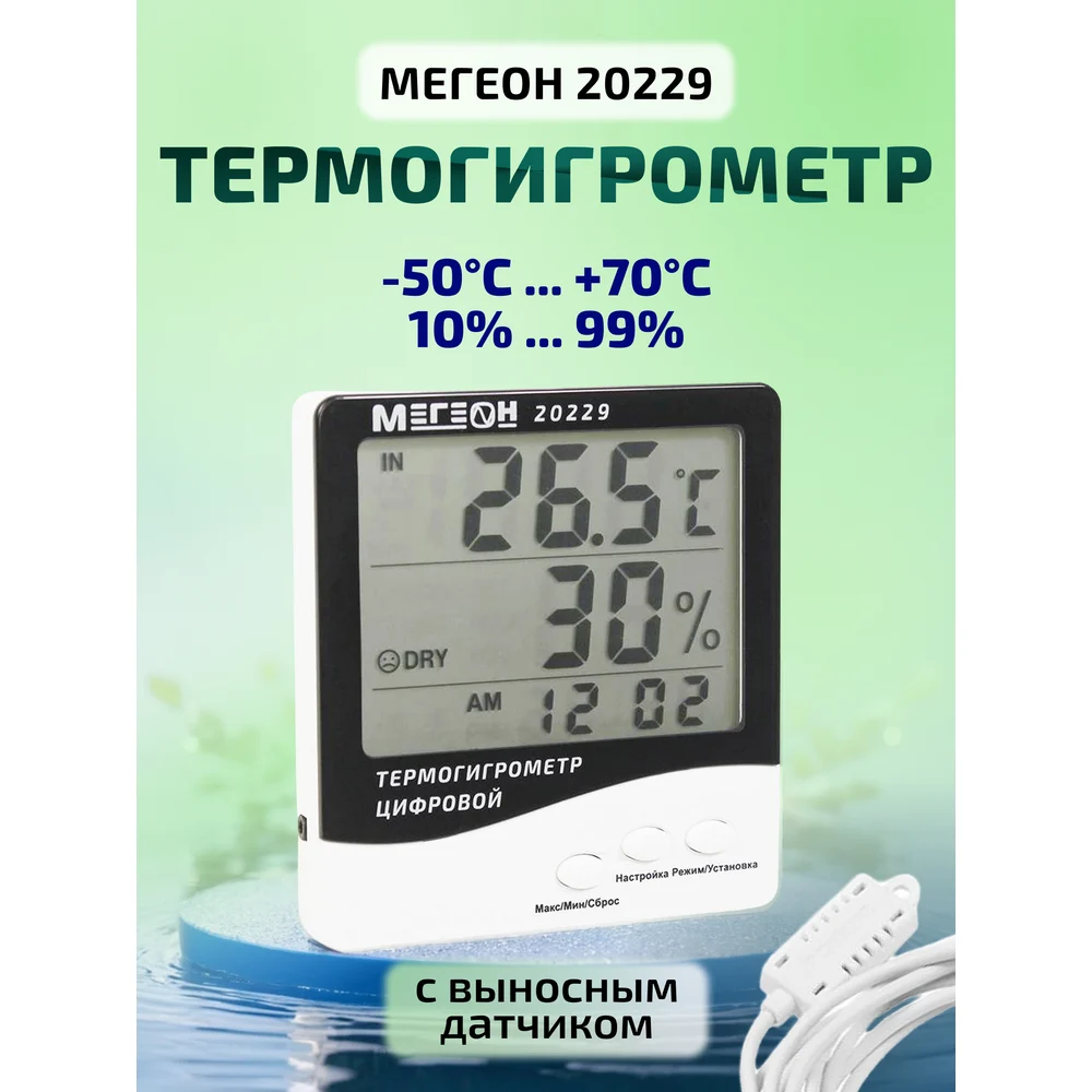 Цифровой настольный термогигрометр МЕГЕОН с выносным датчиком 20229 с поверкой к0000401765
