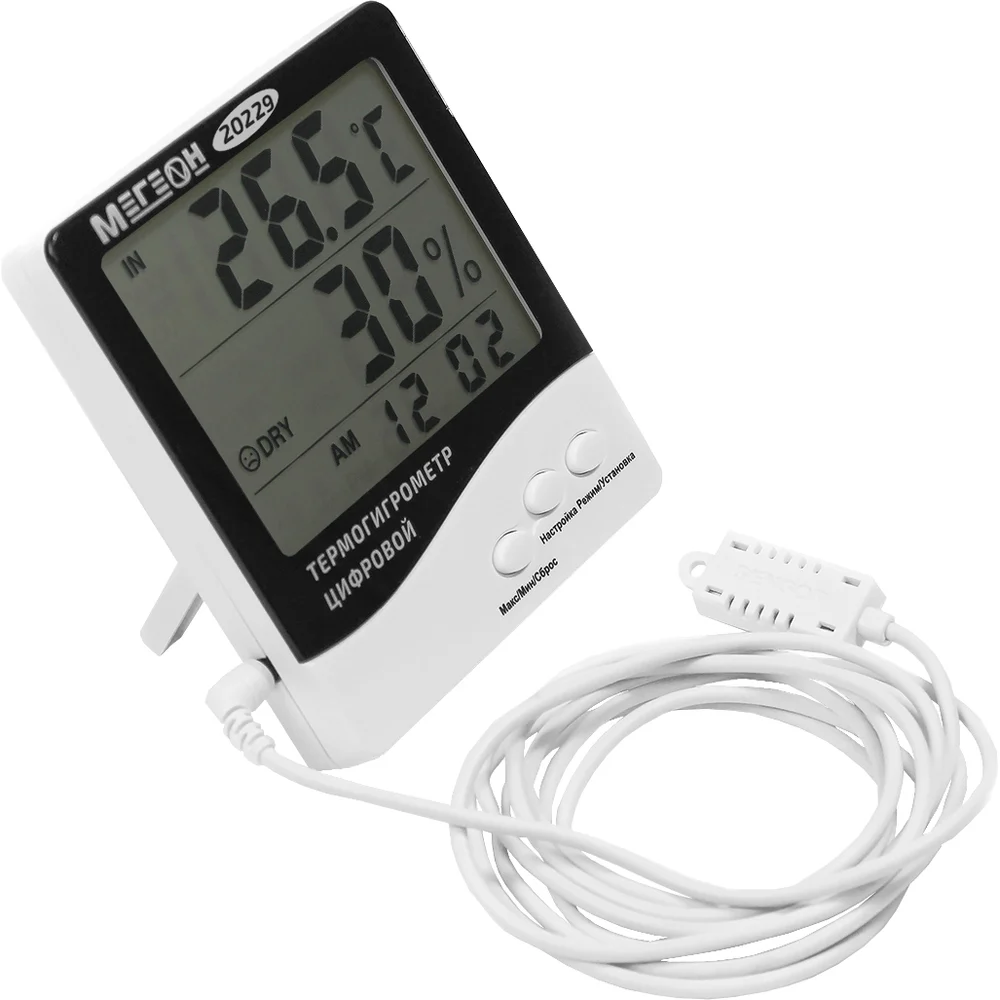 Купить Цифровой настольный термогигрометр МЕГЕОН с выносным датчиком 20229 с поверкой к0000401765 по лучшей цене с доставкой - интернет магазин №1 в России
