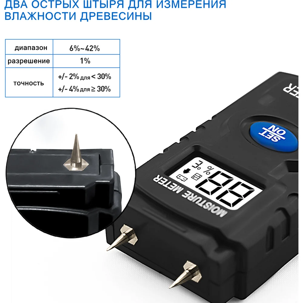 Диапазон измерения влажности (древесина) 6 - 42