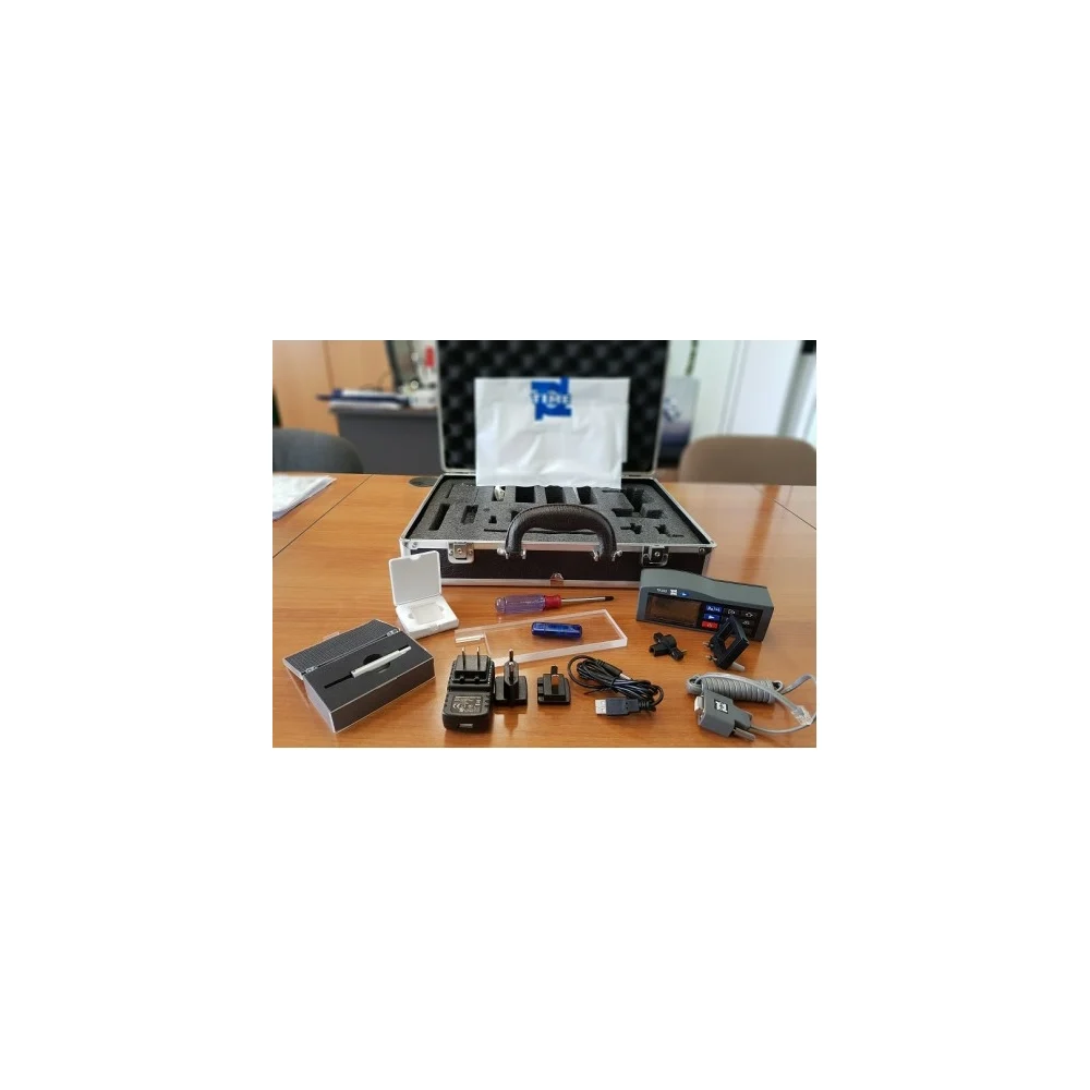 Комплектация Электронный блок профилометра TR200; Стандартный датчик TS 100; Эталон шероховатости по Ra; Зарядное устройство; Защитный наконечник; Стальная опора; Отвертка; Инструкция; Сертификат TIME; Гарантийный талон; Кейс для транспортировки и хранения