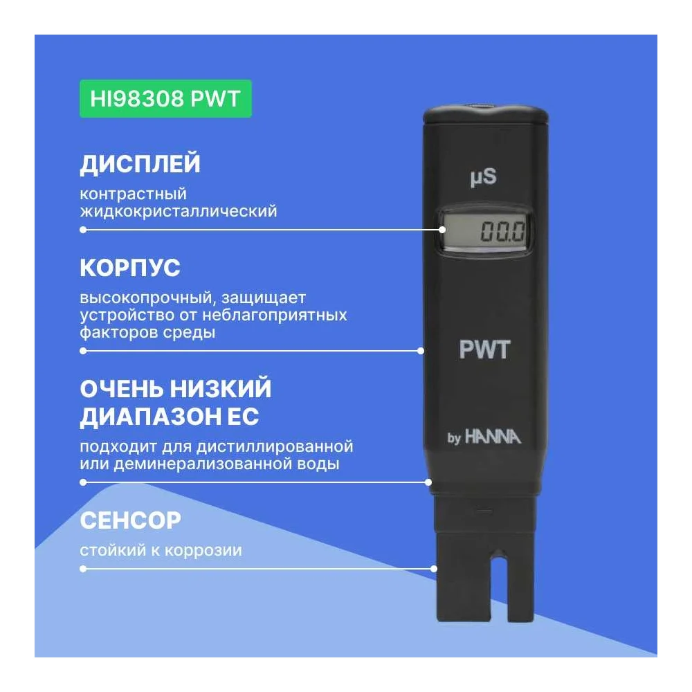 Купить Карманный кондуктометр для обесcоленной воды HANNA instruments PWT HI98308 по лучшей цене с доставкой - интернет магазин №1 в России
