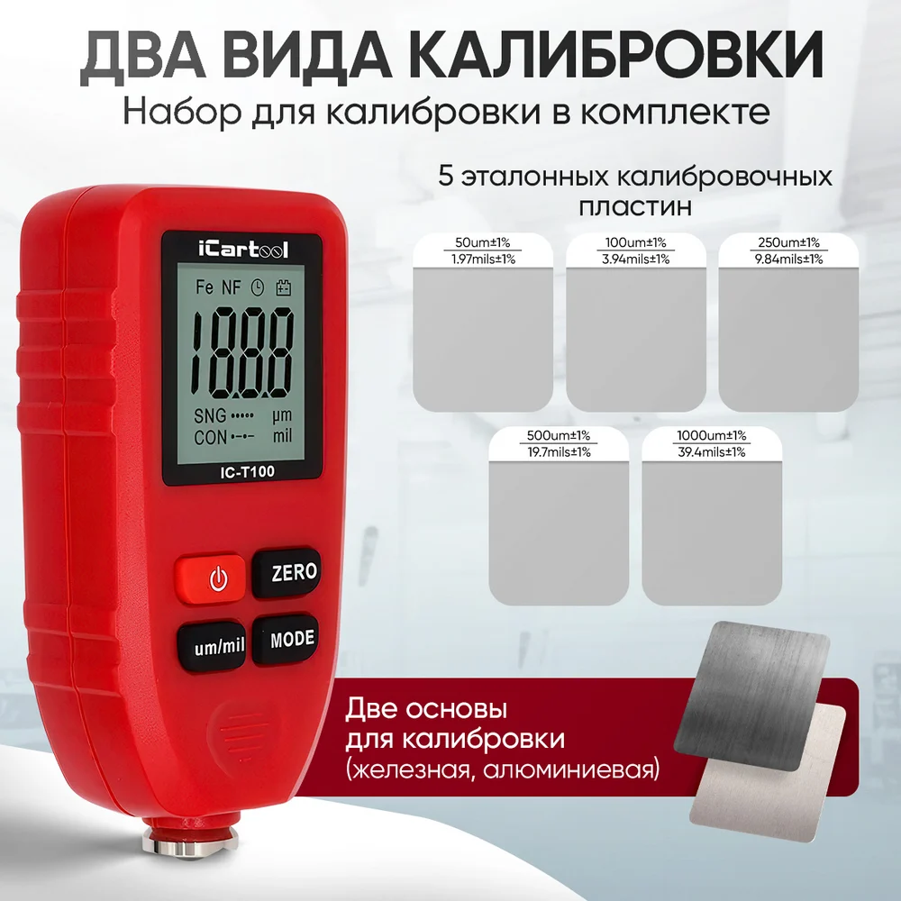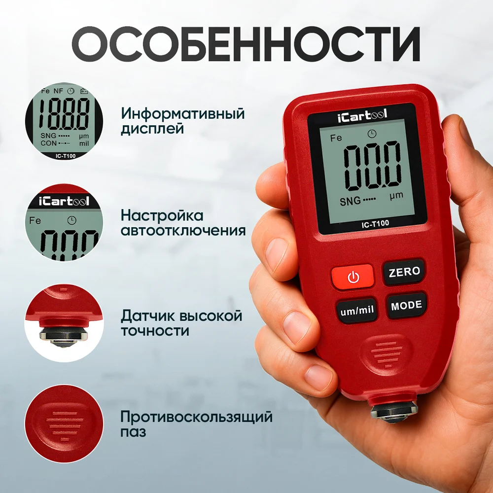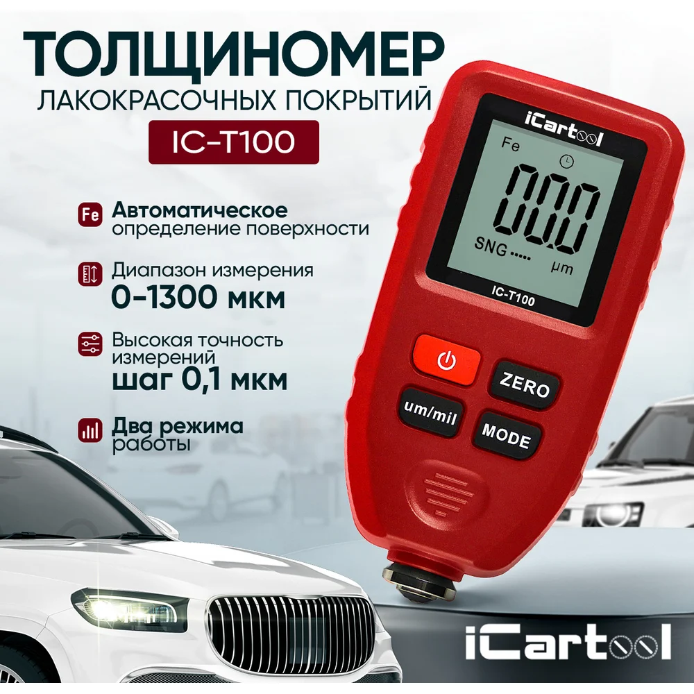 Купить Толщиномер лакокрасочных покрытий iCartool IC-T100 по лучшей цене с доставкой - интернет магазин №1 в России