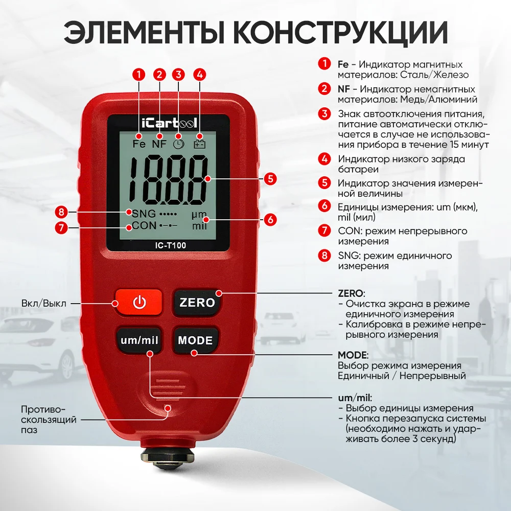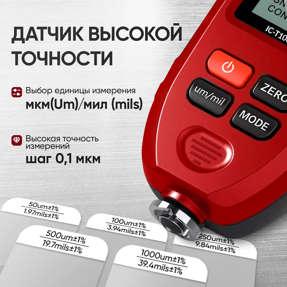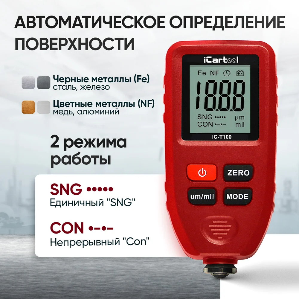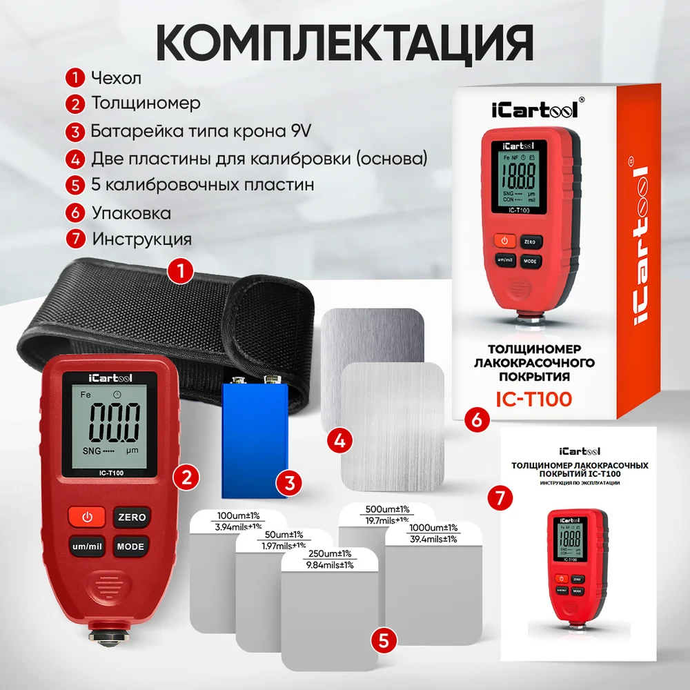 Купить Толщиномер лакокрасочных покрытий iCartool IC-T100 по лучшей цене с доставкой - интернет магазин №1 в России