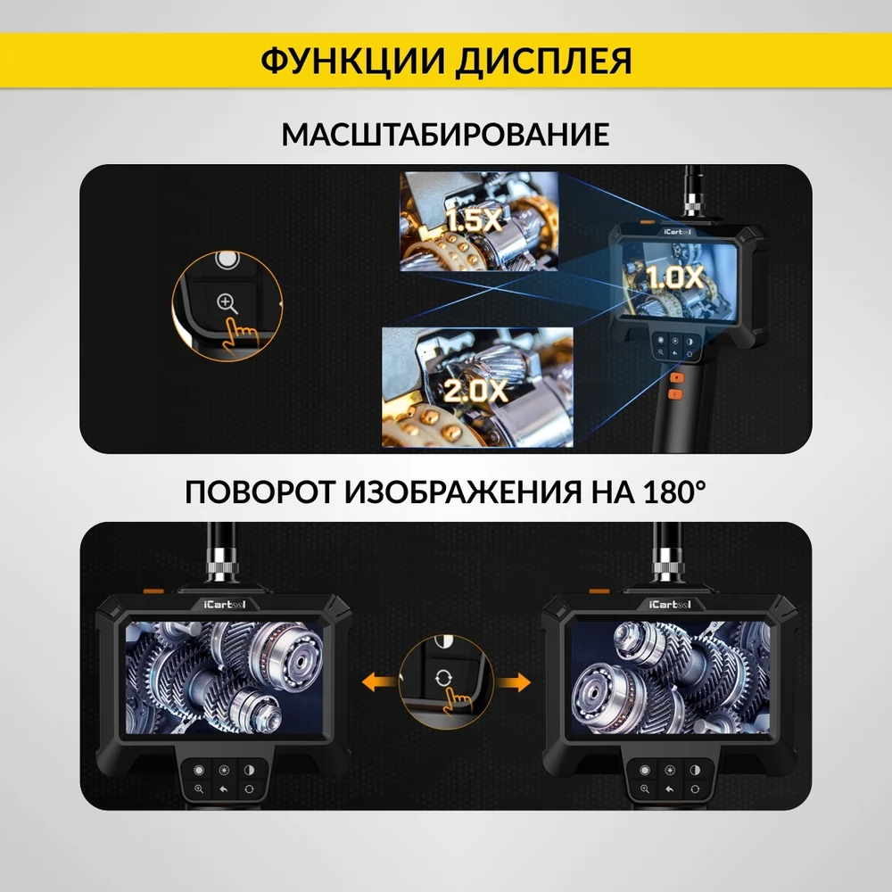 Купить Промышленный эндоскоп iCarTool IPS экран 4.3", 2Мп, зонд 8.5 мм, длина 1м IC-VC81 по лучшей цене с доставкой - интернет магазин №1 в России