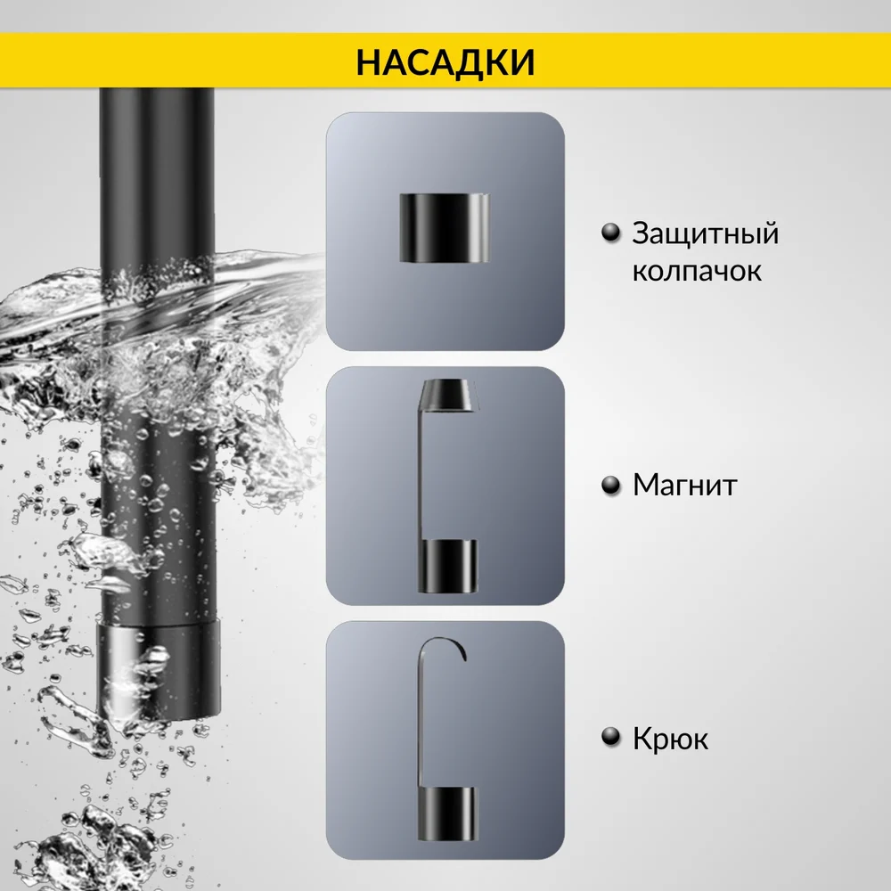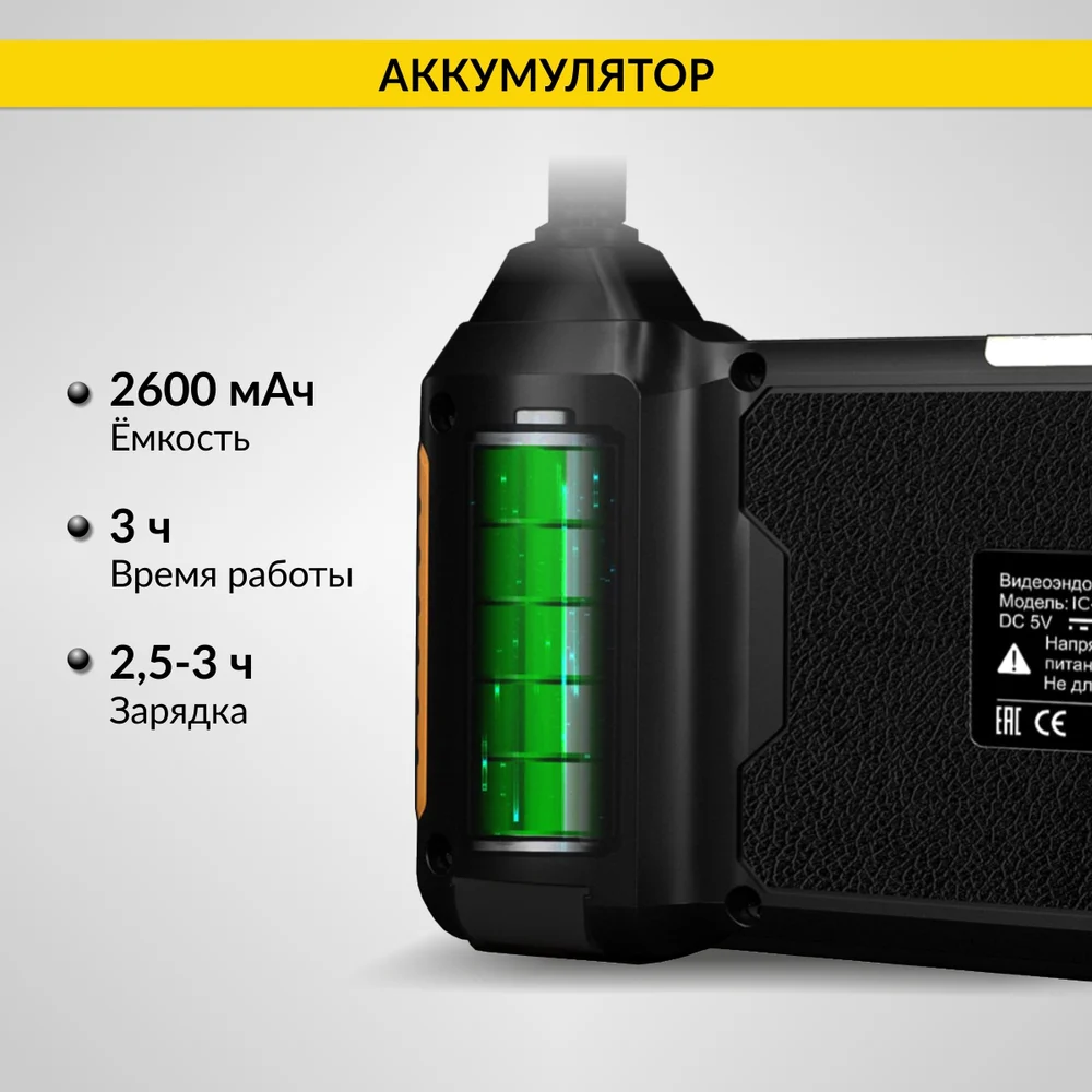 Комплектация Видеоэндоскоп IC-V117; Магнит; Защитный колпачок; Крючок; Кабель для зарядки USB-MicroUSB; Инструкция пользователя; Чехол для переноски и хранения