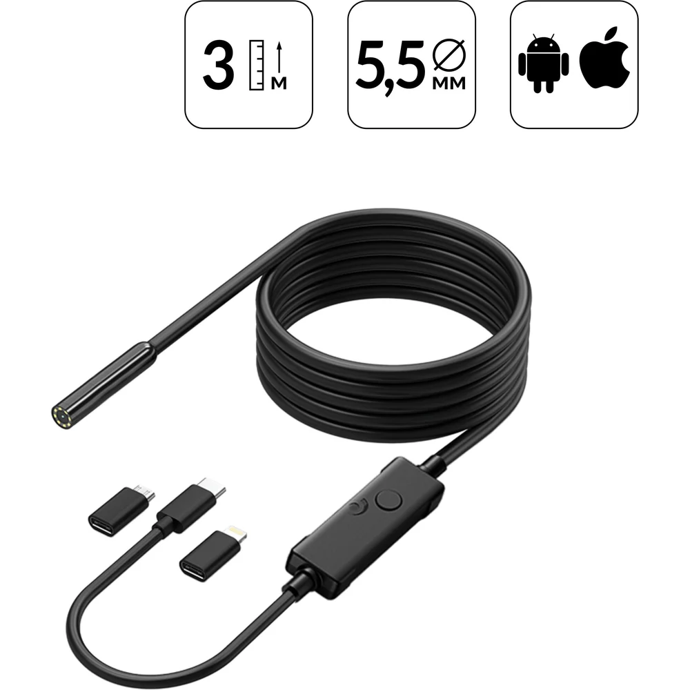 Купить Видеоэндоскоп iCarTool USB, 2Мп, 1920x1080, 3м, 5.5 мм зонд IC-V553 по лучшей цене с доставкой - интернет магазин №1 в России