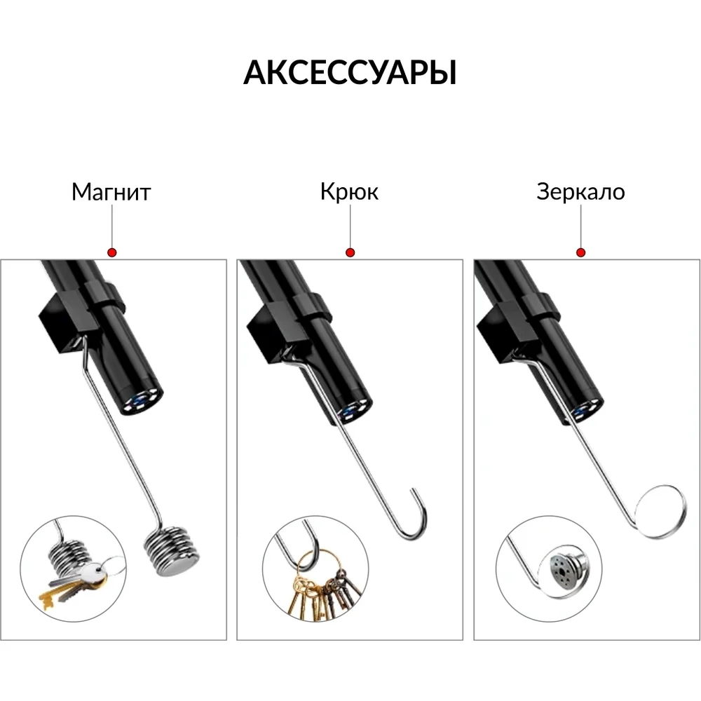 Комплектация Видеоэндоскоп с зондом; Крюк; Магнит; Зеркало; Зарядка USB-Type-C; Картонная упаковка; Электронная инструкция