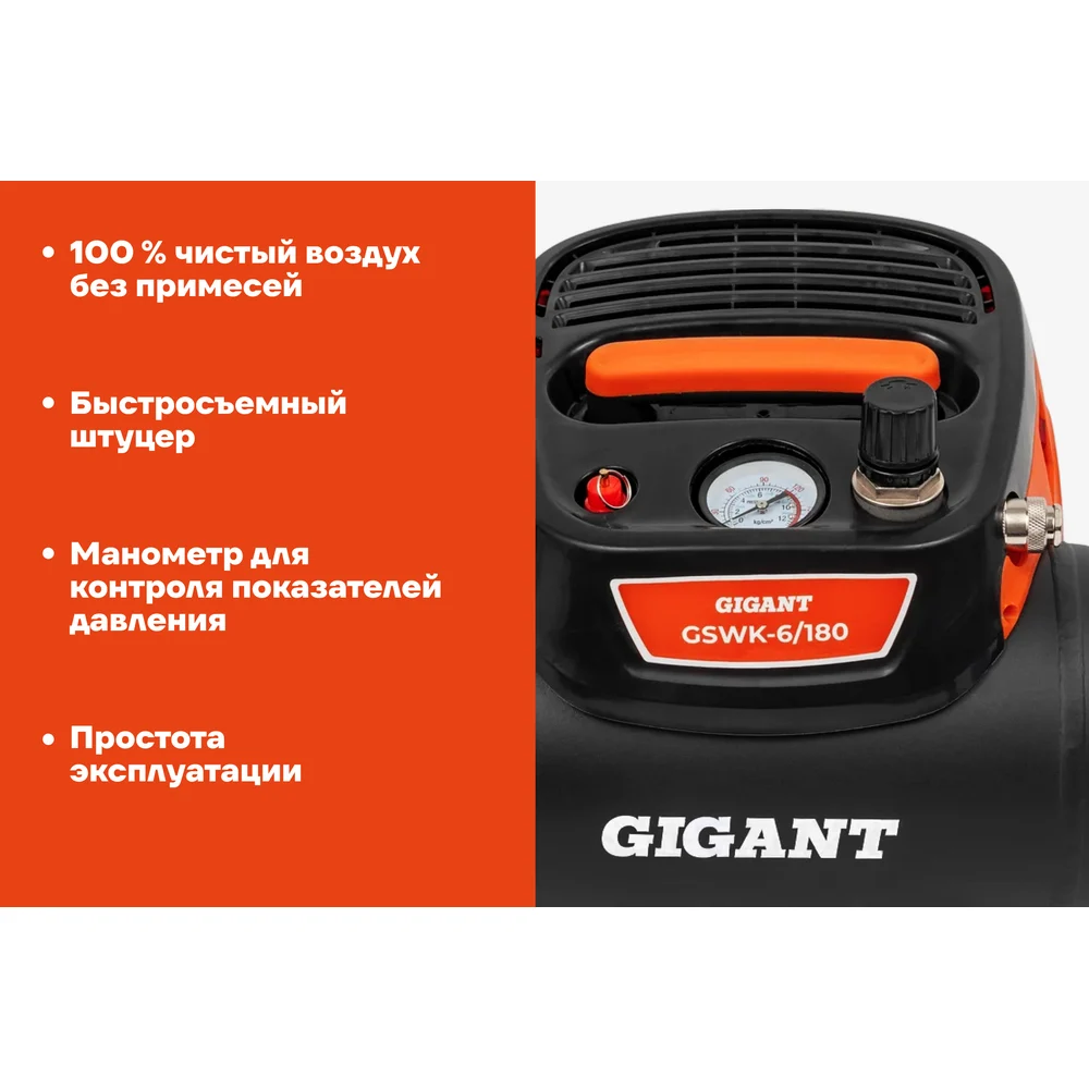 Купить Безмасляный малошумный компрессор Gigant GSWK-6/180 по лучшей цене с доставкой - интернет магазин №1 в России
