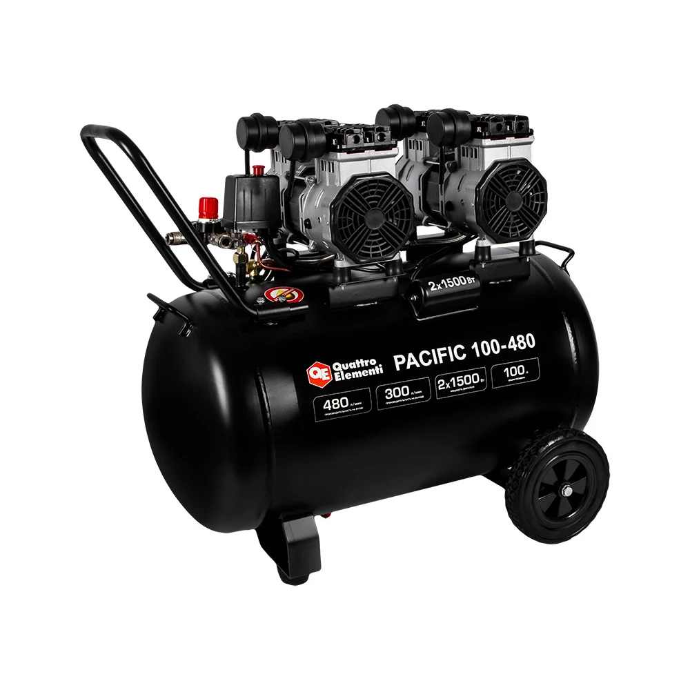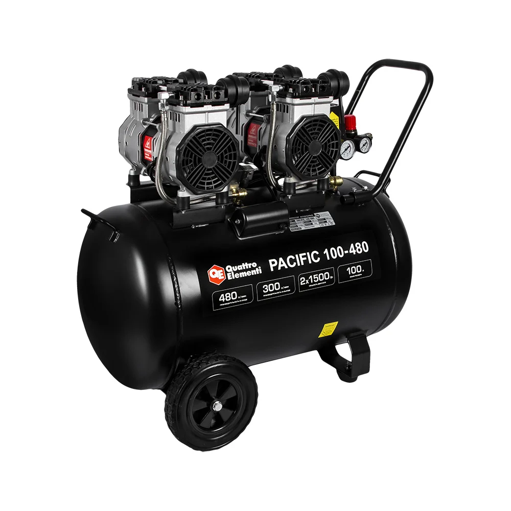 Купить Безмасляный поршневой компрессор QUATTRO ELEMENTI PACIFIC 100-480 480 л/мин, 100 л, 3.5 л.с, 8 бар 915-373 по лучшей цене с доставкой - интернет магазин №1 в России