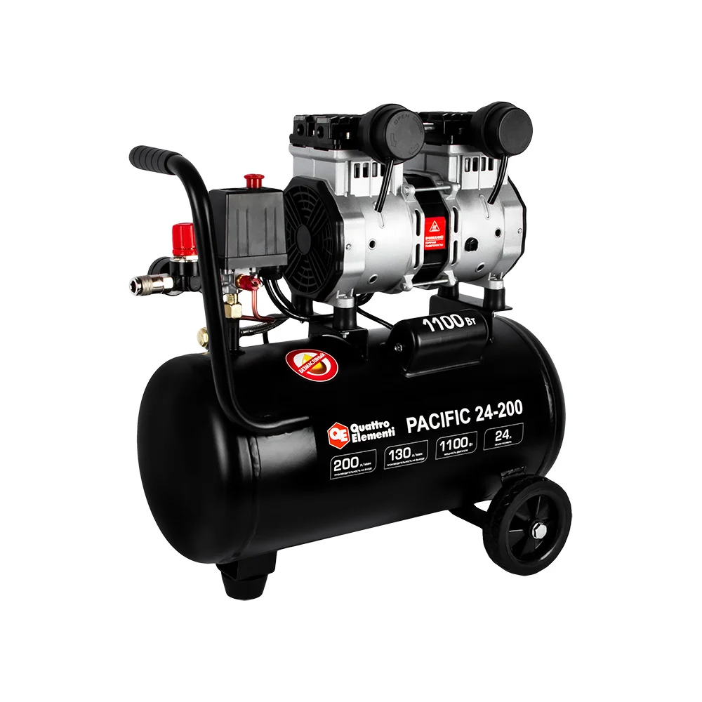 Купить Безмасляный поршневой компрессор QUATTRO ELEMENTI PACIFIC 24-200 200 л/мин, 24л, 1,2 л.с, 8 бар 915-335 по лучшей цене с доставкой - интернет магазин №1 в России