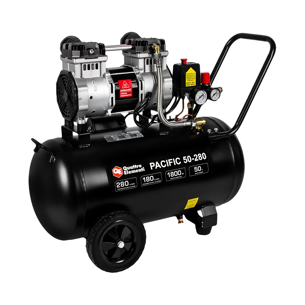 Купить Безмасляный поршневой компрессор QUATTRO ELEMENTI PACIFIC 50-280 280 л/мин, 50 л, 2.5 л.с, 8 бар 915-342 по лучшей цене с доставкой - интернет магазин №1 в России