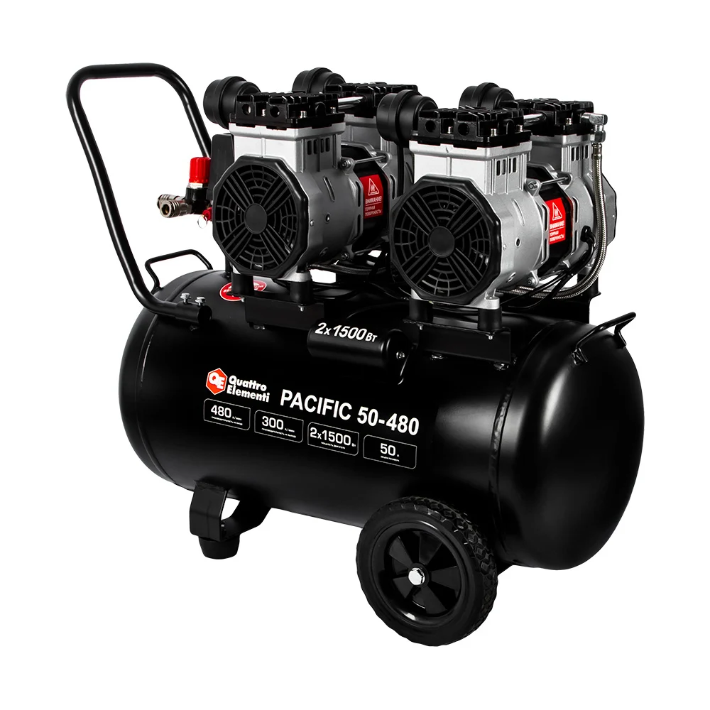 Купить Безмасляный поршневой компрессор QUATTRO ELEMENTI PACIFIC 50-480 480 л/мин, 50 л, 3.5 л.с, 8 бар 915-366 по лучшей цене с доставкой - интернет магазин №1 в России