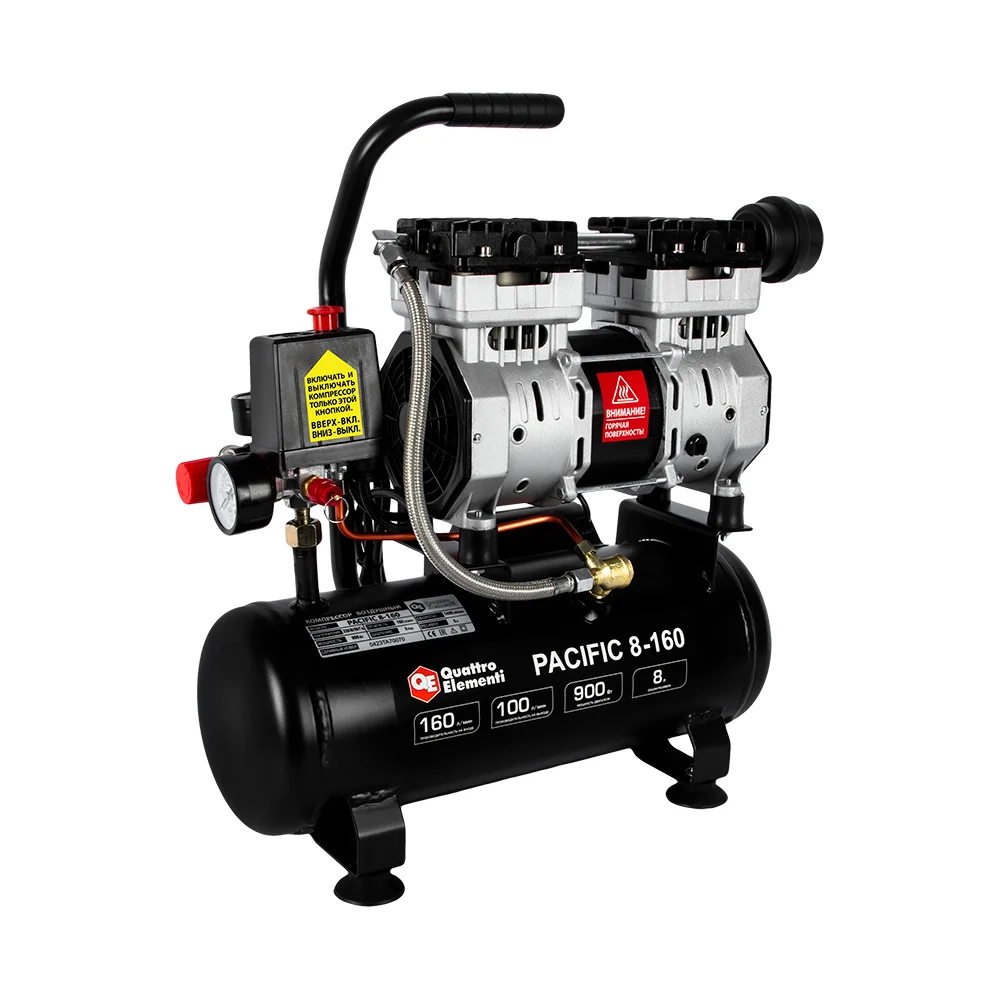 Безмасляный поршневой компрессор QUATTRO ELEMENTI PACIFIC 8-160 160 л/мин, 8 л, 1.2л.с, 8 бар 915-328