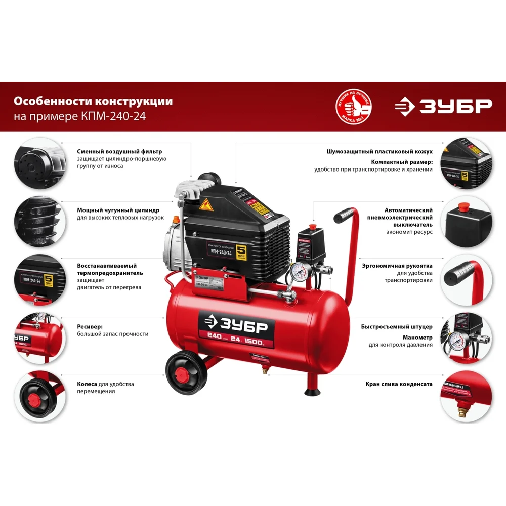 Купить Безмасляный воздушный компрессор 200 л/мин ЗУБР КП-200-24 по лучшей цене с доставкой - интернет магазин №1 в России