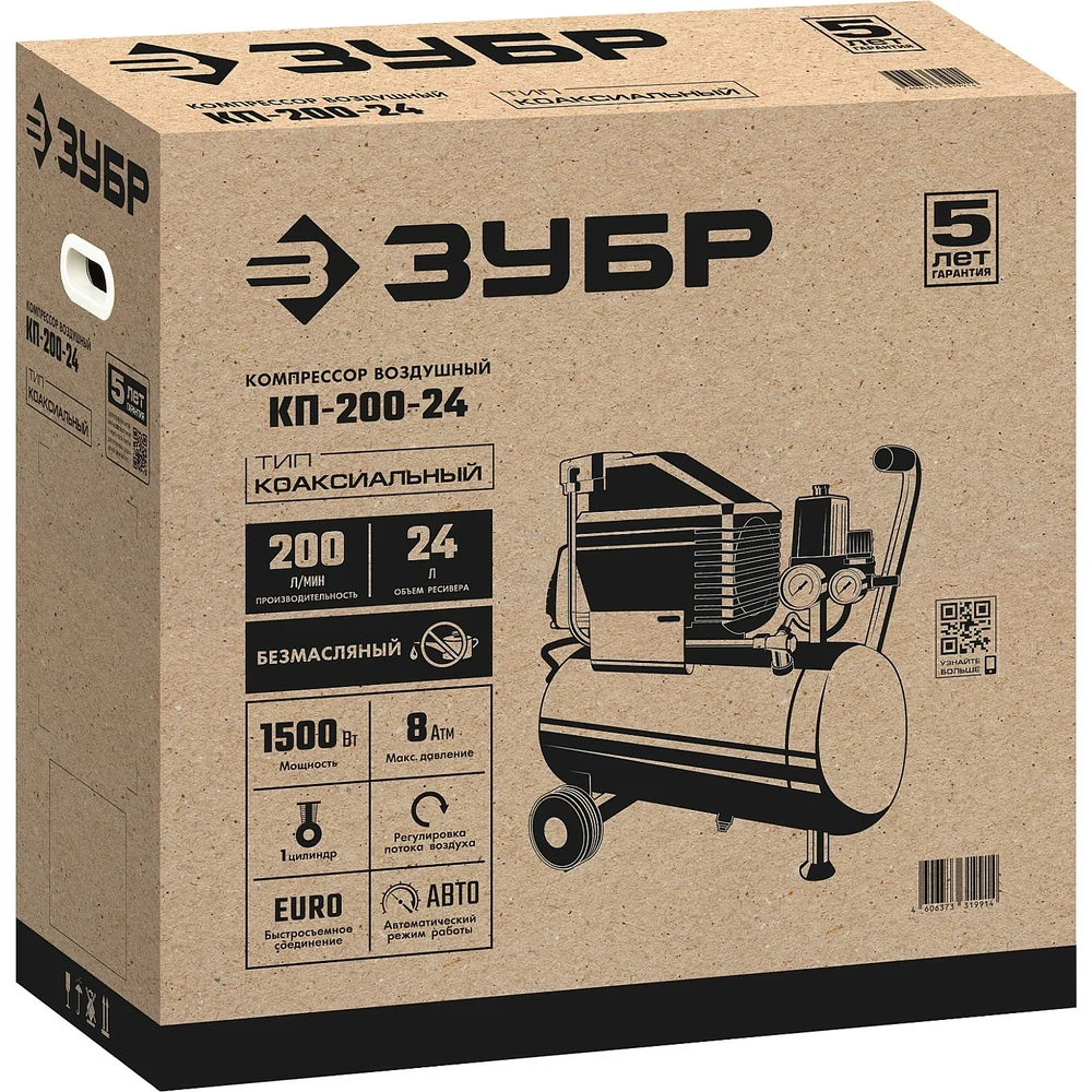 Безмасляный воздушный компрессор 200 л/мин ЗУБР КП-200-24