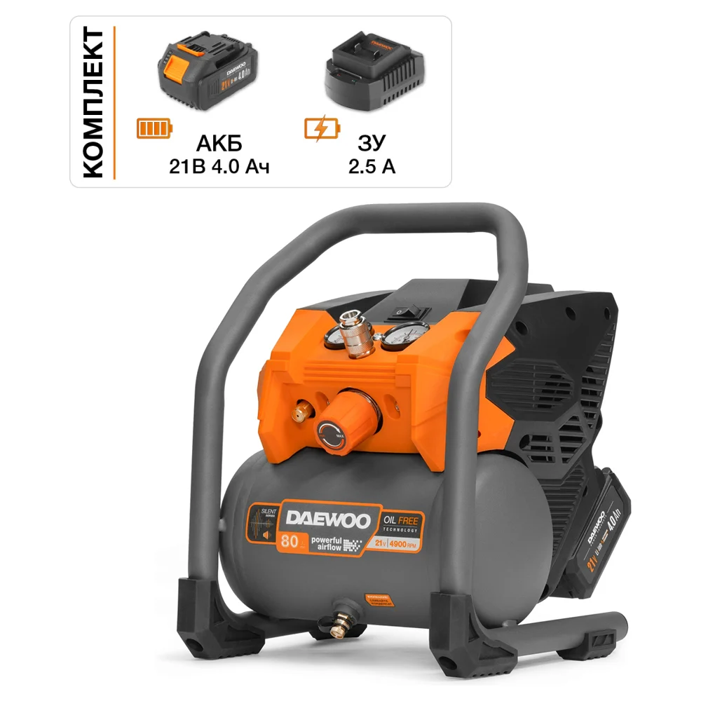 Купить Компрессор аккумуляторный безмасляный DAEWOO DAC 80S Li SET по лучшей цене с доставкой - интернет магазин №1 в России