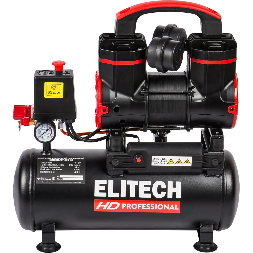 Купить Компрессор безмасляный малошумный Elitech ACF 200-8S 204538 по лучшей цене с доставкой - интернет магазин №1 в России
