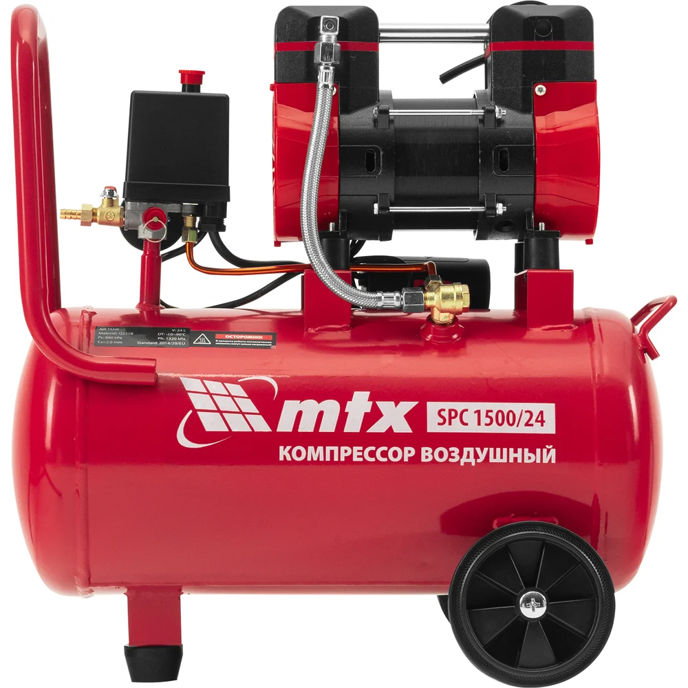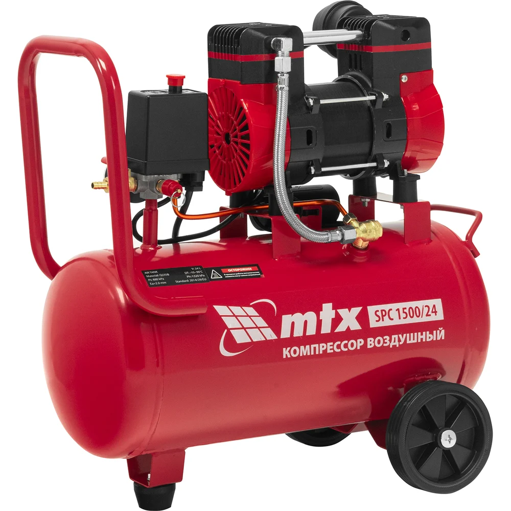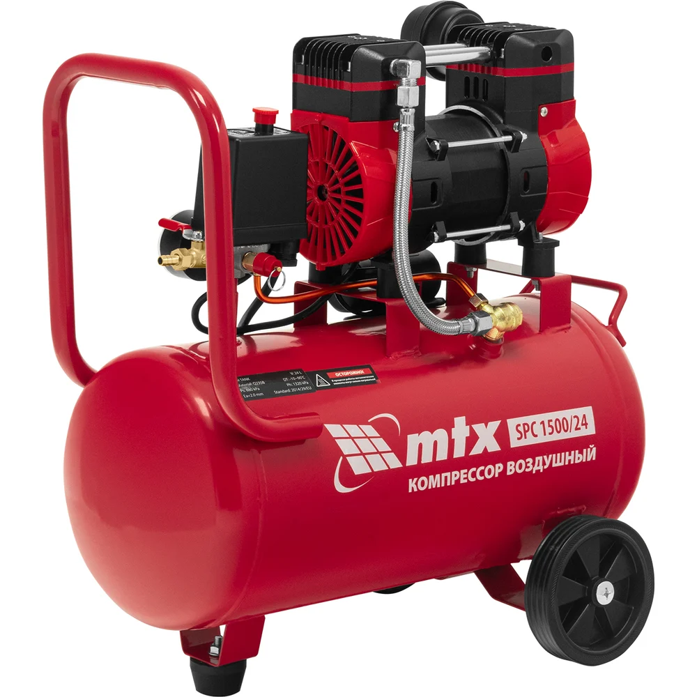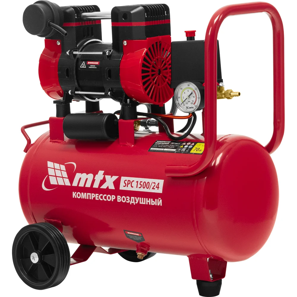 Купить Компрессор безмасляный малошумный MTX SPC 1500/24, 1500 Вт, ресивер 24 л, 260 л/мин 58139 по лучшей цене с доставкой - интернет магазин №1 в России