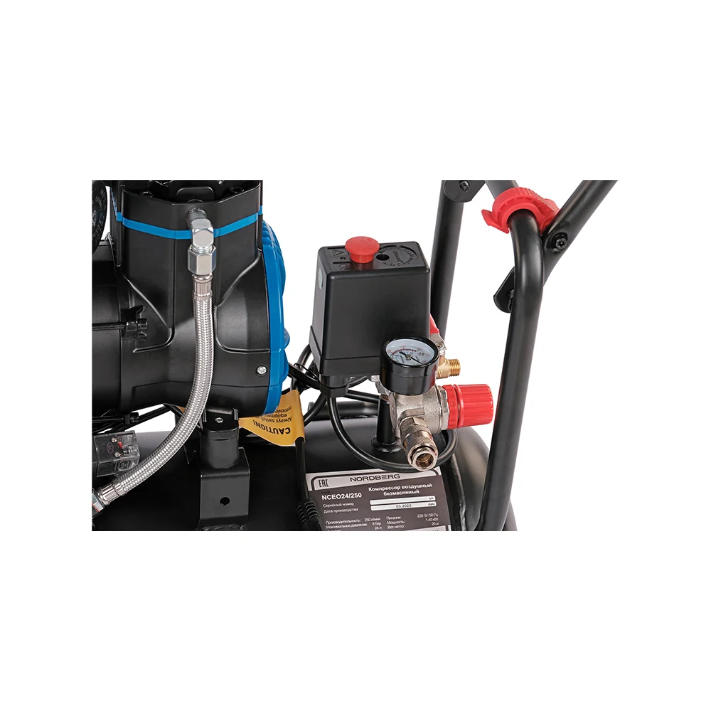 Купить Компрессор безмасляный NORDBERG 220В, ресив. 24л, 250 л/мин NCEO24/250 по лучшей цене с доставкой - интернет магазин №1 в России