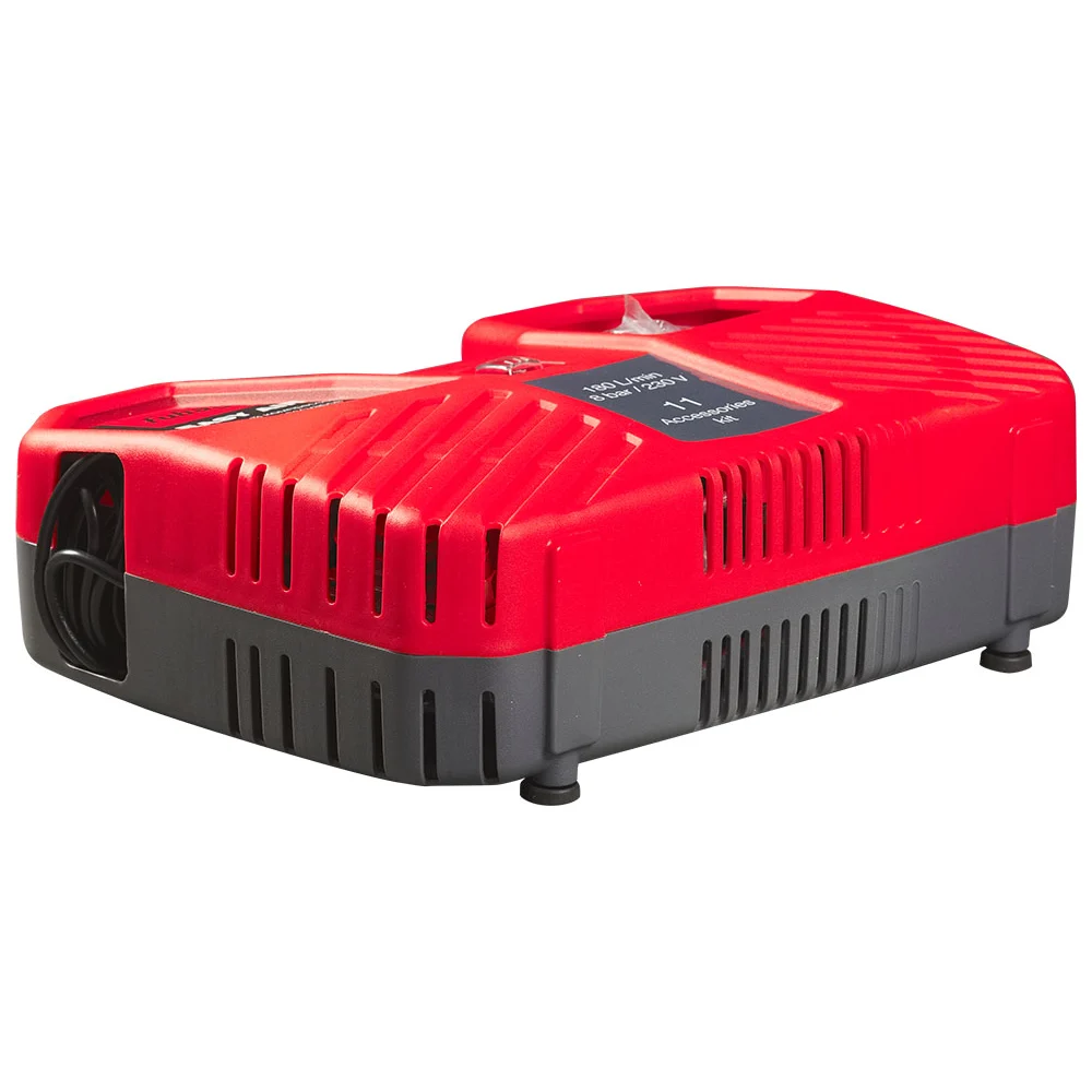 Комплектация Компрессор; Воздушный шланг, 3 м; Пневмопистолет с манометром для накачки; Удлиненная насадка для продувки; Игла для накачки мячей; Универсальный адаптер для клапанов с внутренним диаметром 6 мм; Универсальный адаптер для клапанов с внутренним диаметром 9 мм; Адаптер для накачки велосипедных шин; Насадки для накачки лодок, матрасов, бассейнов; Переходник (для насадок накачки лодок, матрасов, бассейнов)