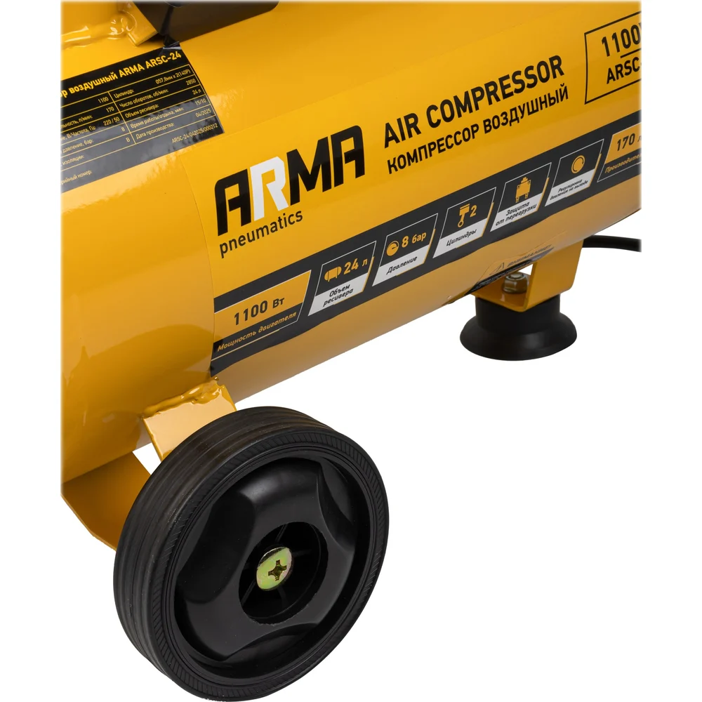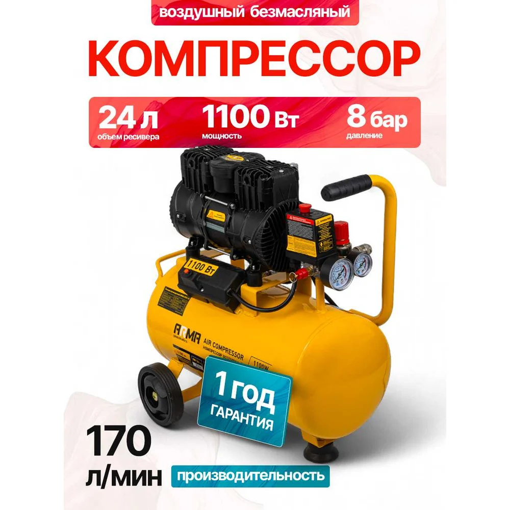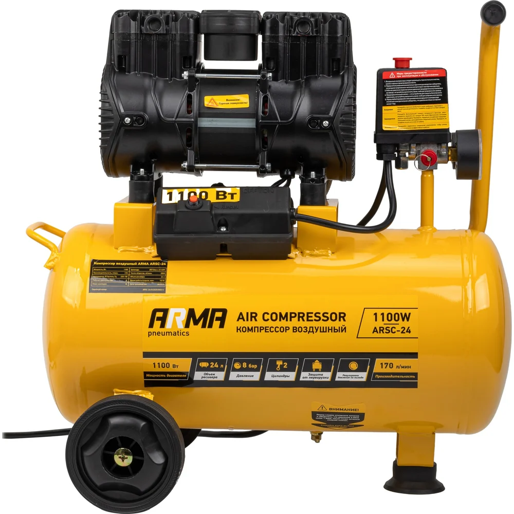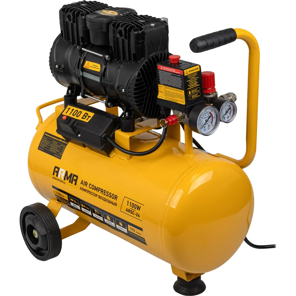 Купить Компрессор воздушный безмасляный малошумный ARMA 1,1 кВт, 24л ресивер, 170 л/мин ARSC-24 по лучшей цене с доставкой - интернет магазин №1 в России