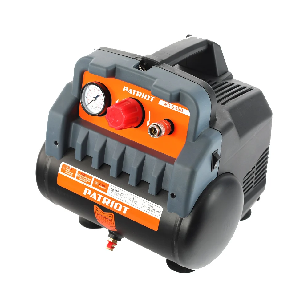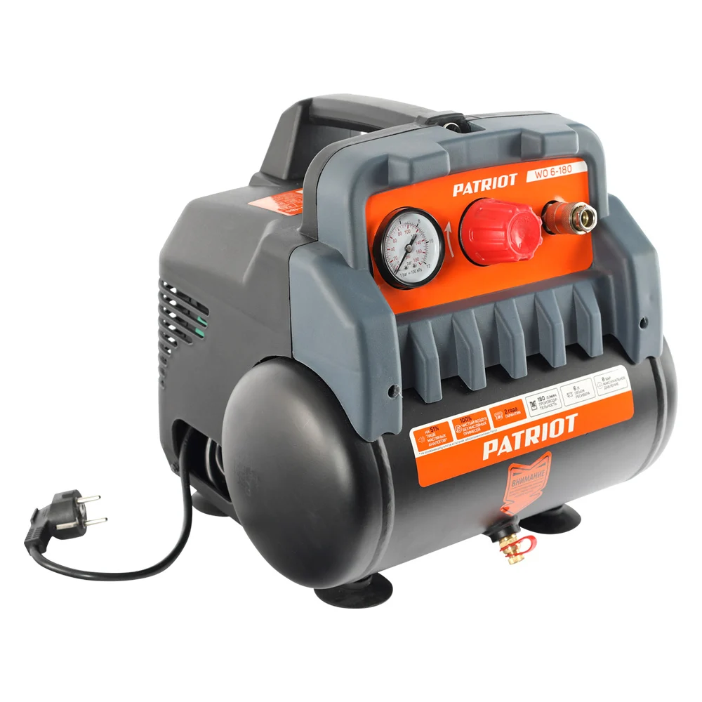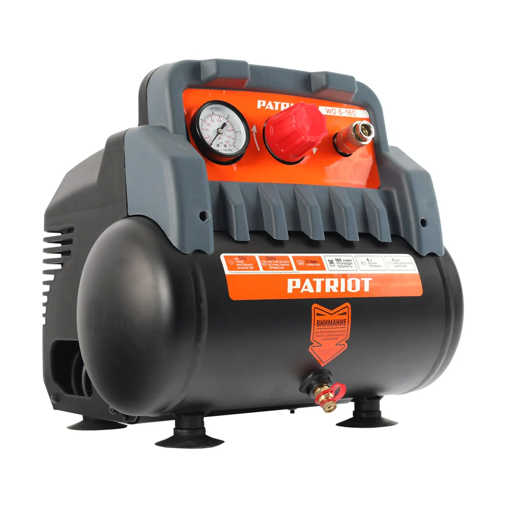 Купить Поршневой безмасляный компрессор PATRIOT WO 6-180, 180 л/мин, 1.1 кВт, 525301910 по лучшей цене с доставкой - интернет магазин №1 в России