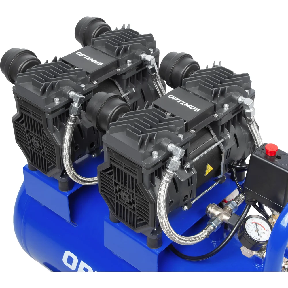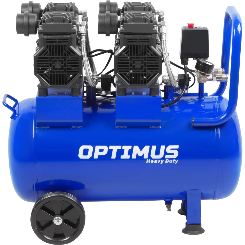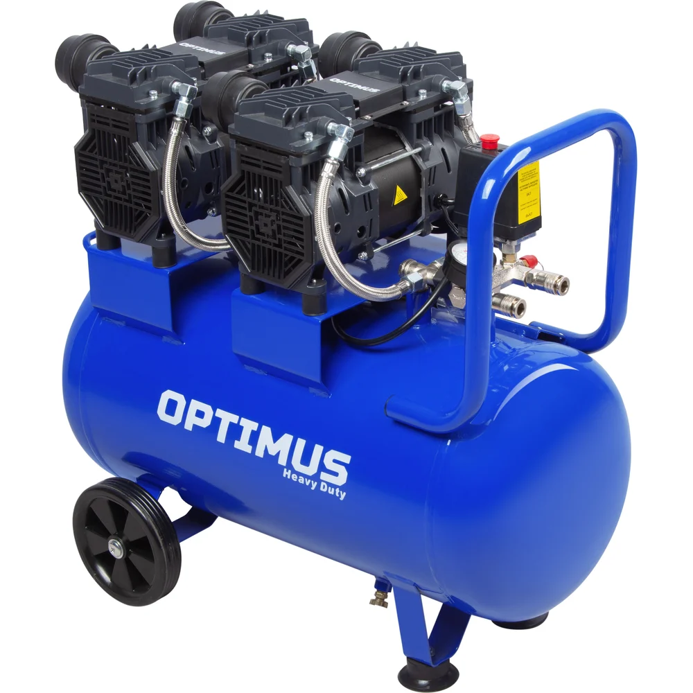 Купить Поршневой компрессор Optimus безмасляный, малошумный, 440 л/мин, ресивер 50 литров, 3 квт (1,5+1,5 квт) hd OPT-305044 по лучшей цене с доставкой - интернет магазин №1 в России