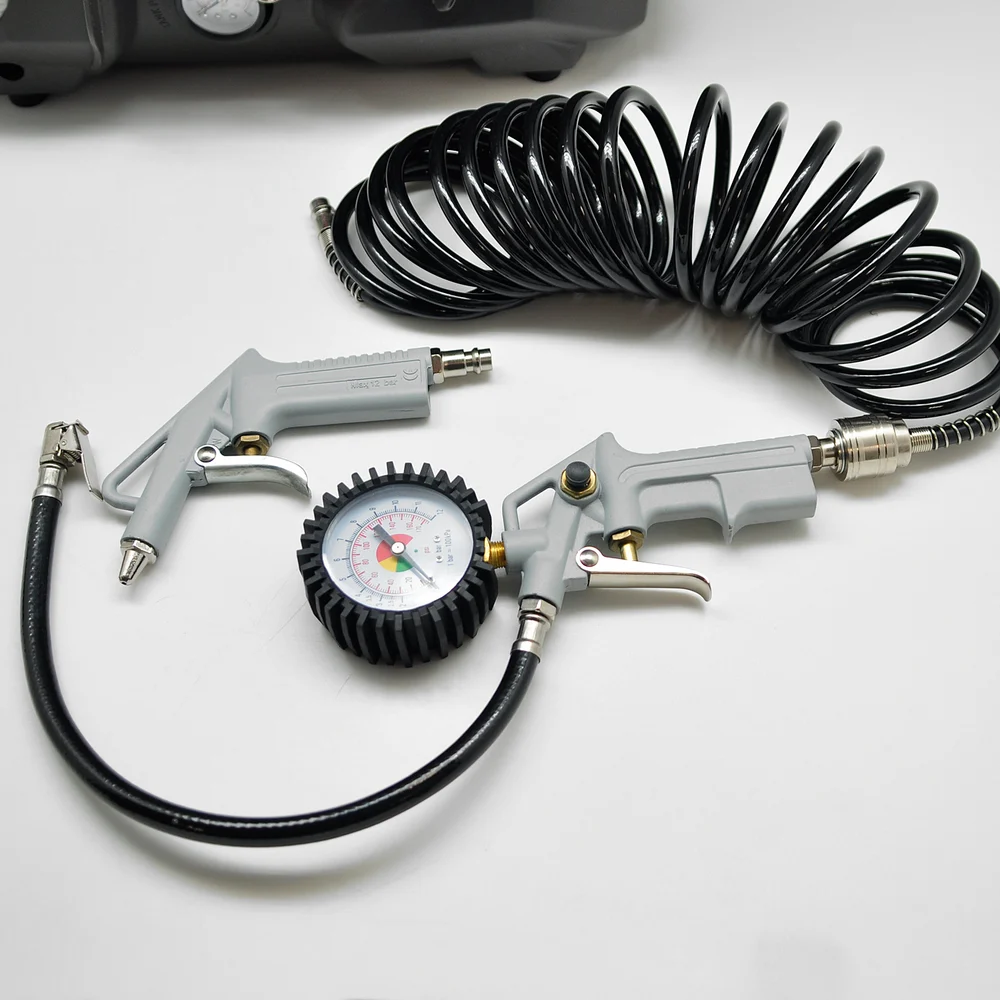 Комплектация Воздушный компрессор - 1 шт; Пневмошланг с разъемами - 1 шт; Пневмопистолет с манометром - 1 шт; Продувочный пистолет - 1 шт; Ремень для переноски - 1 шт; Дополнительные насадки для накачки - 7 шт; Руководство по эксплуатации; Гарантийный талон; Упаковочная коробка