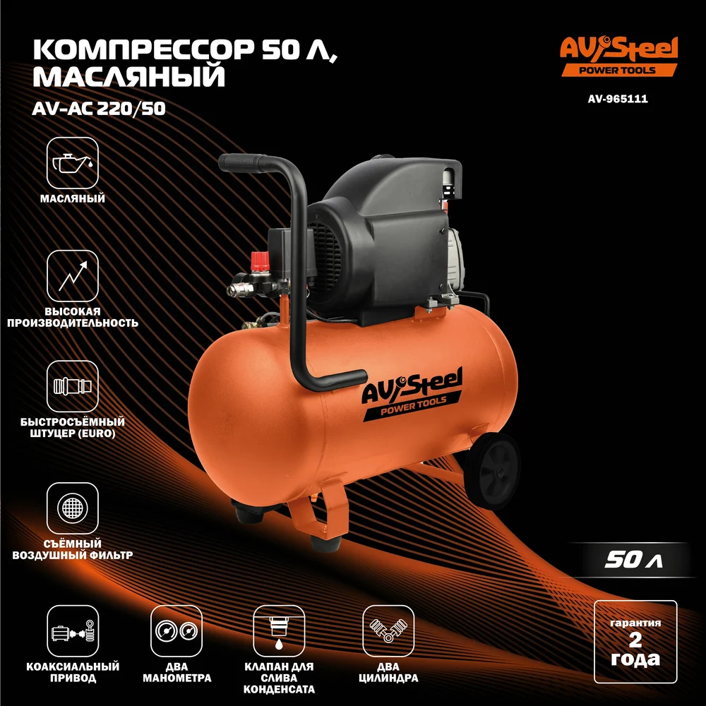 Купить Компрессор AV Steel 50 л/8 бар/220 л AV-965111 по лучшей цене с доставкой - интернет магазин №1 в России