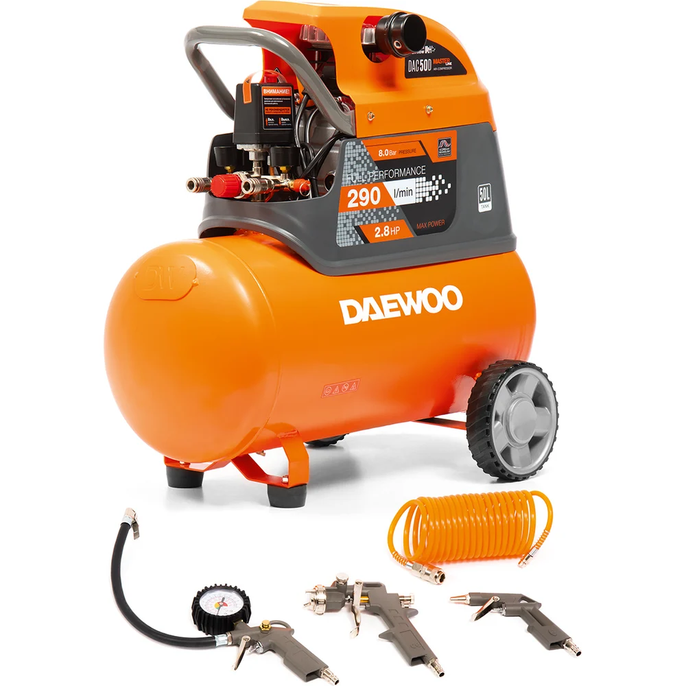 Купить Компрессор Daewoo поршневой с набором аксессуаров DAC 50D по лучшей цене с доставкой - интернет магазин №1 в России