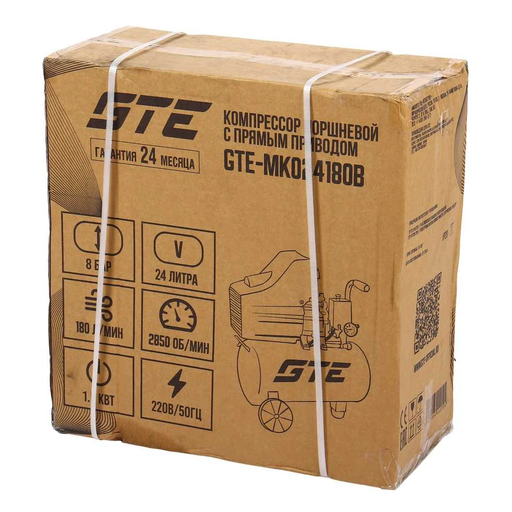 Купить Компрессор поршневой с прямым приводом GTE 220В, ресив. 24л, 180л/мин GTE-MK024180B по лучшей цене с доставкой - интернет магазин №1 в России