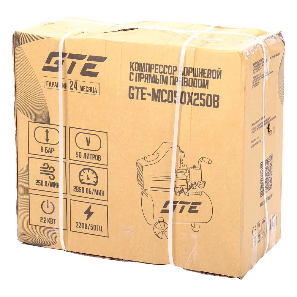 Купить Компрессор поршневой с прямым приводом GTE V-образный, 220В, ресив. 50л, 250л/мин GTE-MC050X250B по лучшей цене с доставкой - интернет магазин №1 в России