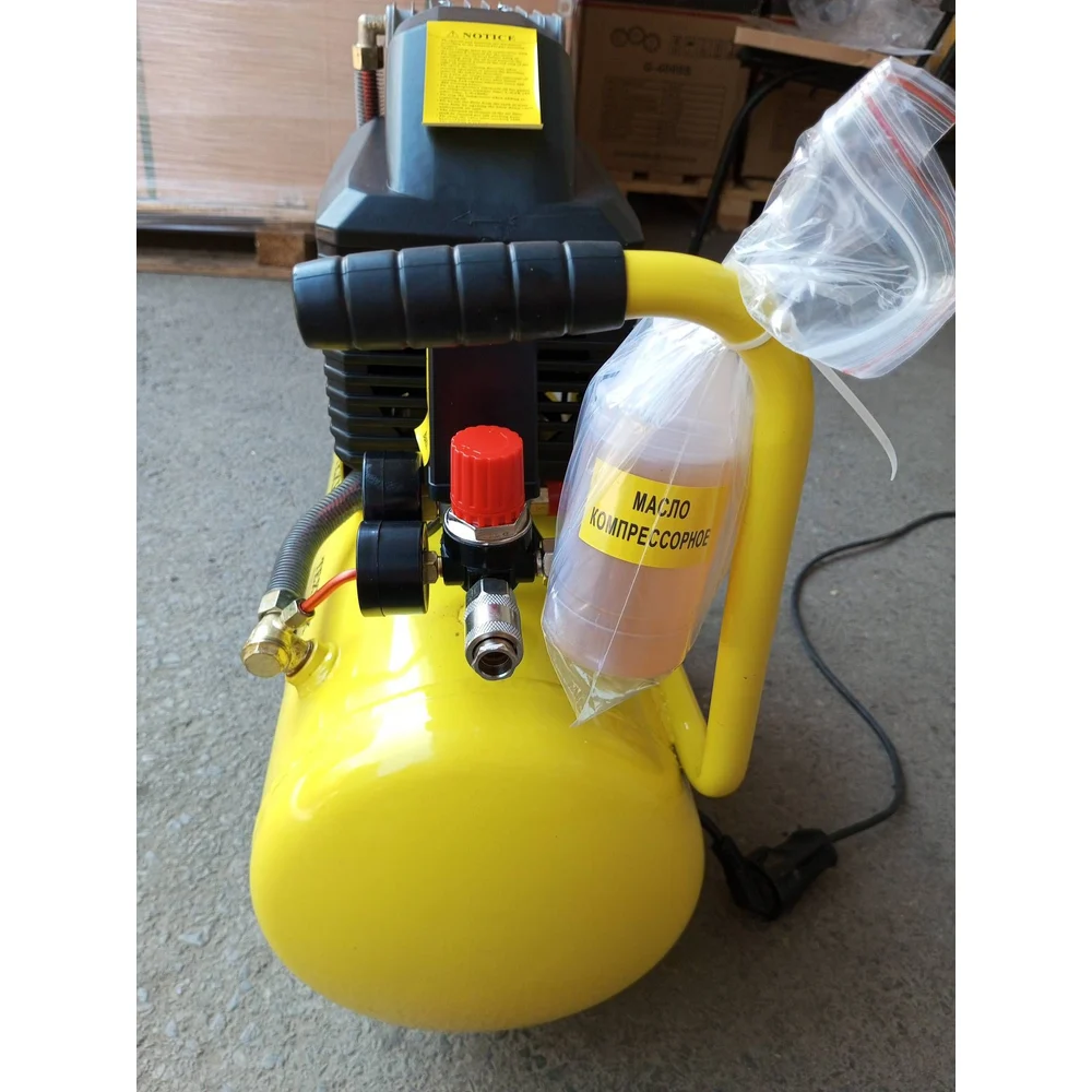 Комплектация Компрессор в сборе; Инструкция; Комплект колес - 2 шт; Опора вибрационная - 1шт; Фильтр - 1шт; Коробка упаковочная твердая; Масло компрессорное