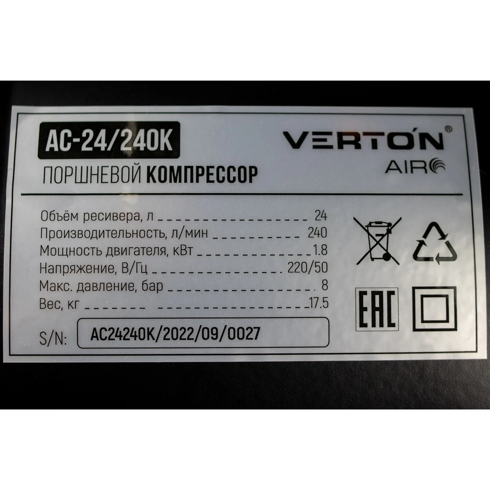 Купить Компрессор VERTON Air AC-24/240K масляный коаксиальный 01.5985.12193 по лучшей цене с доставкой - интернет магазин №1 в России