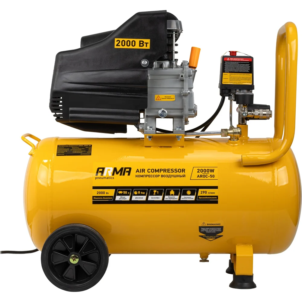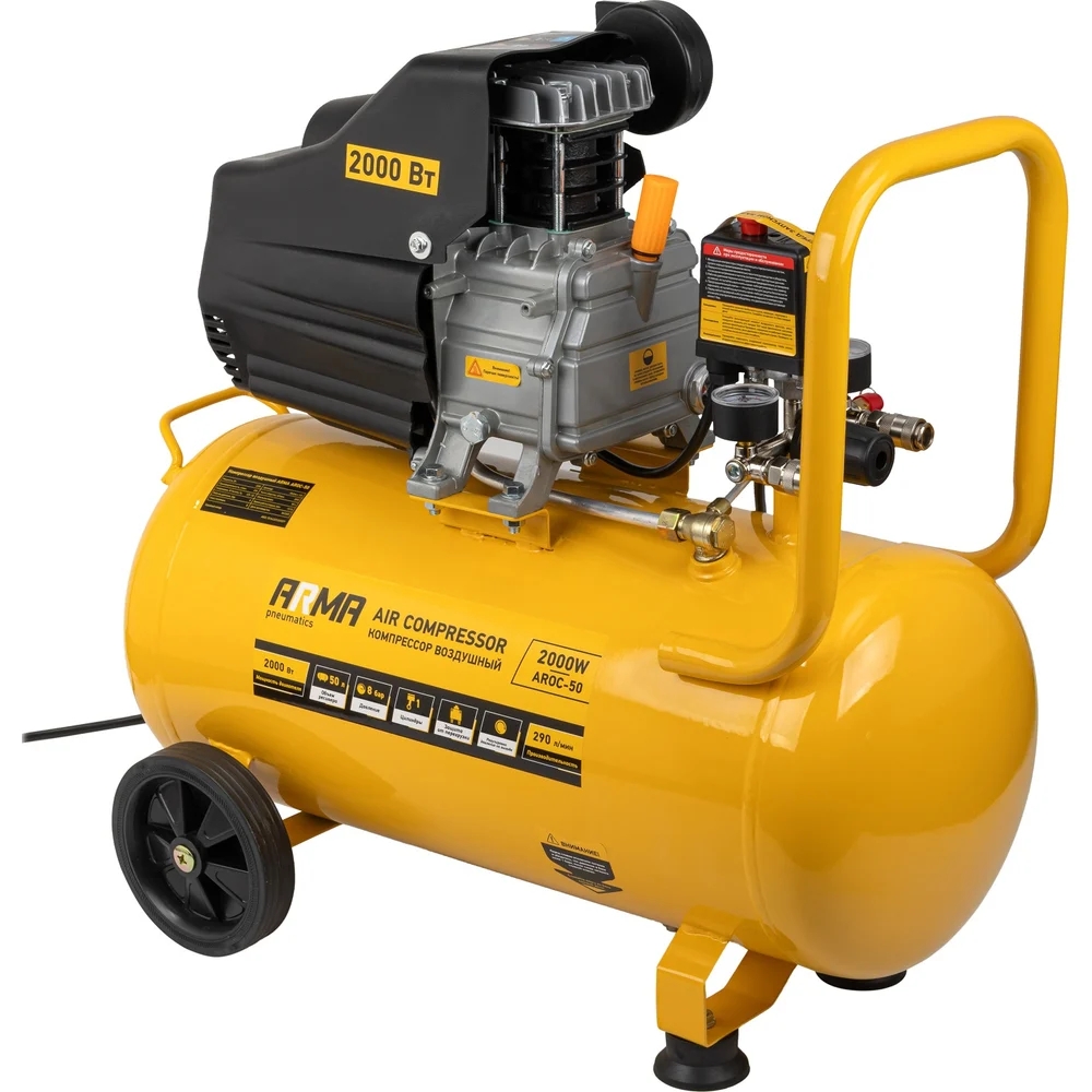 Купить Компрессор воздушный поршневой масляный ARMA 2,0 кВт, 50л ресивер, 290 л/мин AROC-50 по лучшей цене с доставкой - интернет магазин №1 в России