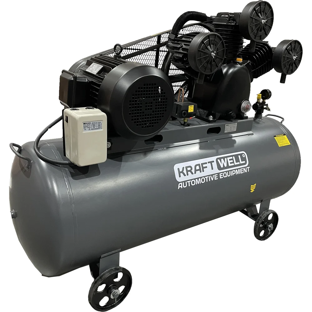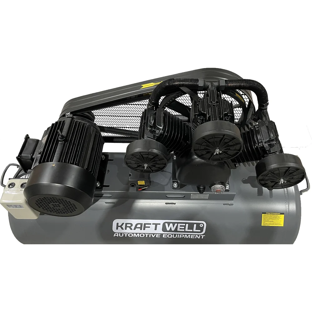 Купить Поршневой компрессор KraftWell 950 л/мин, 10 бар, 300 л, 380В, сеть 380 В, произв-ть 950 л/мин, объем ресивера 300 л, в комплекте KRW-AC950-300L по лучшей цене с доставкой - интернет магазин №1 в России