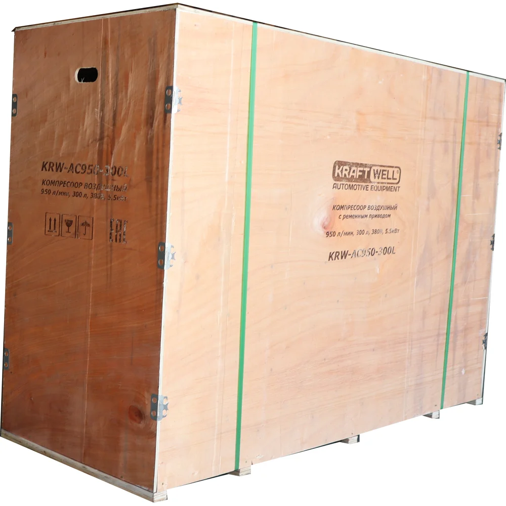 Поршневой компрессор KraftWell 950 л/мин, 10 бар, 300 л, 380В, сеть 380 В, произв-ть 950 л/мин, объем ресивера 300 л, в комплекте KRW-AC950-300L